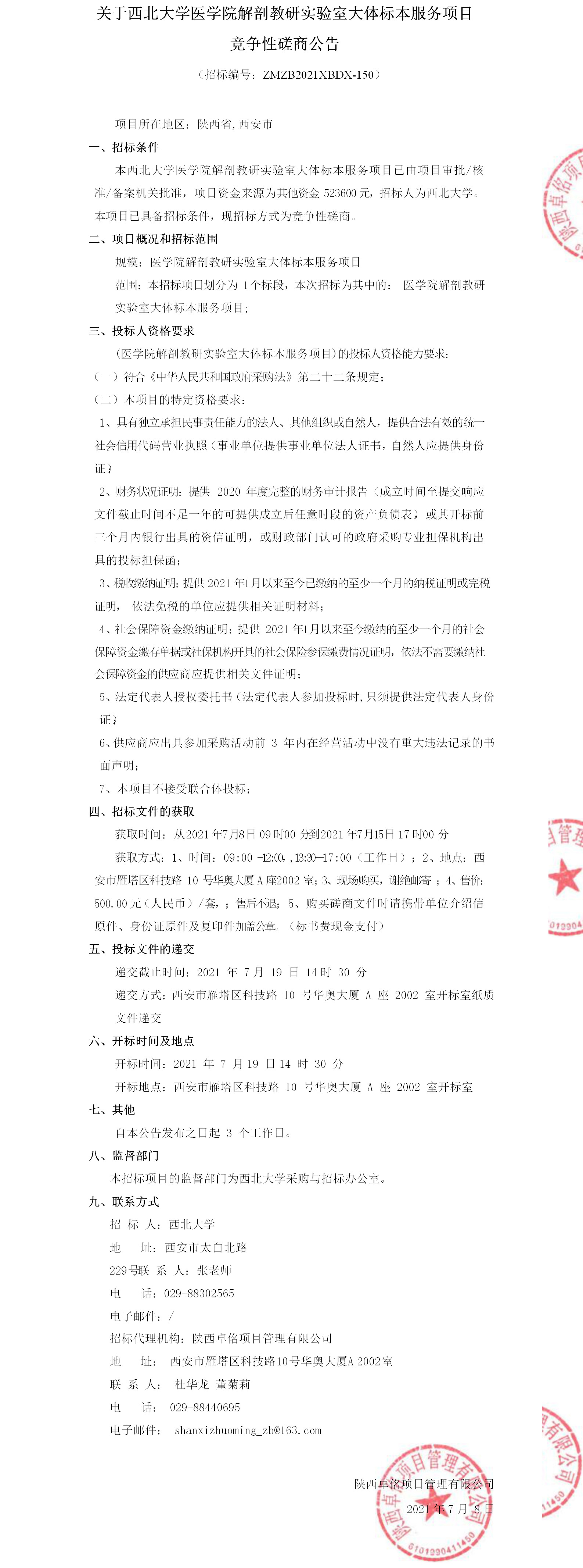 关于MILAN.COM医学院解剖教研实验室大体标本服务项目竞争性磋商公告