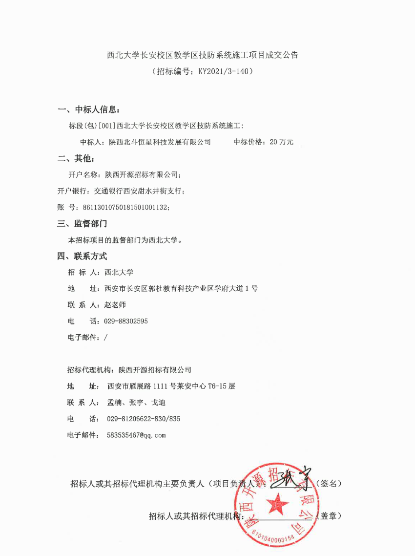 MILAN.COM长安校区教学区技防系统施工项目成交公告
