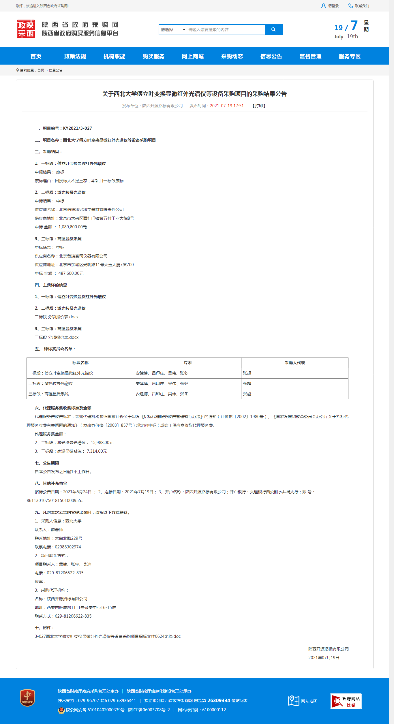关于MILAN.COM傅立叶变换显微红外光谱仪等设备采购项目的采购结果公告 作者: 编辑:采购与招标办公室 时间:2021-07-19 原公告地址:http://www.ccgp-shaanxi.gov.cn/notice/noticeDetail.do?noticeguid=8a85be337a79620e017abdb0b9d25220