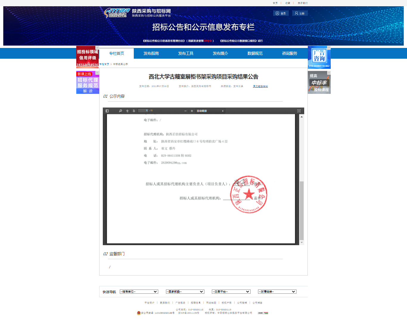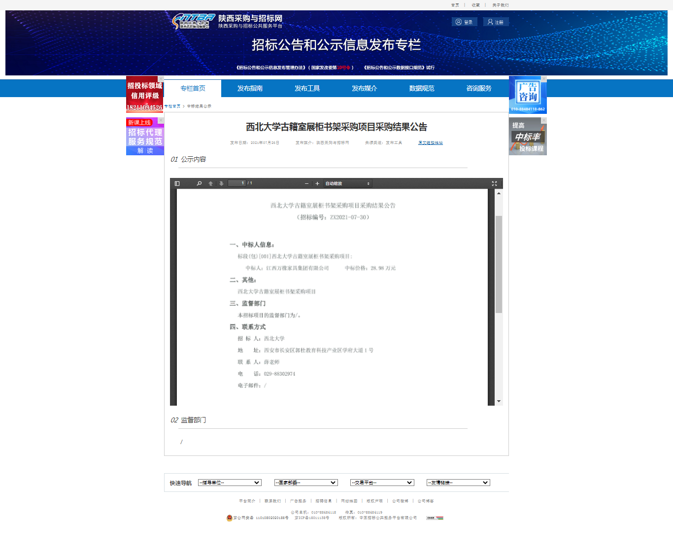 MILAN.COM古籍室展柜书架采购项目采购结果公告 作者: 编辑:采购与招标办公实验室 时间:2021-07-26 原公告地址:http://bulletin.sntba.com/resultBulletin/2021-07-26/323299.html