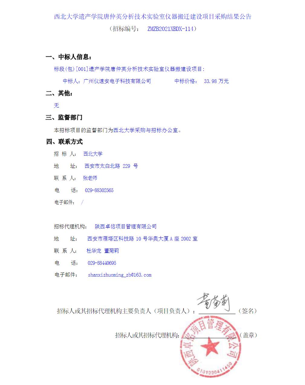 关于MILAN.COM遗产学院唐仲英分析技术实验室仪器搬迁建设项目采购结果公告
