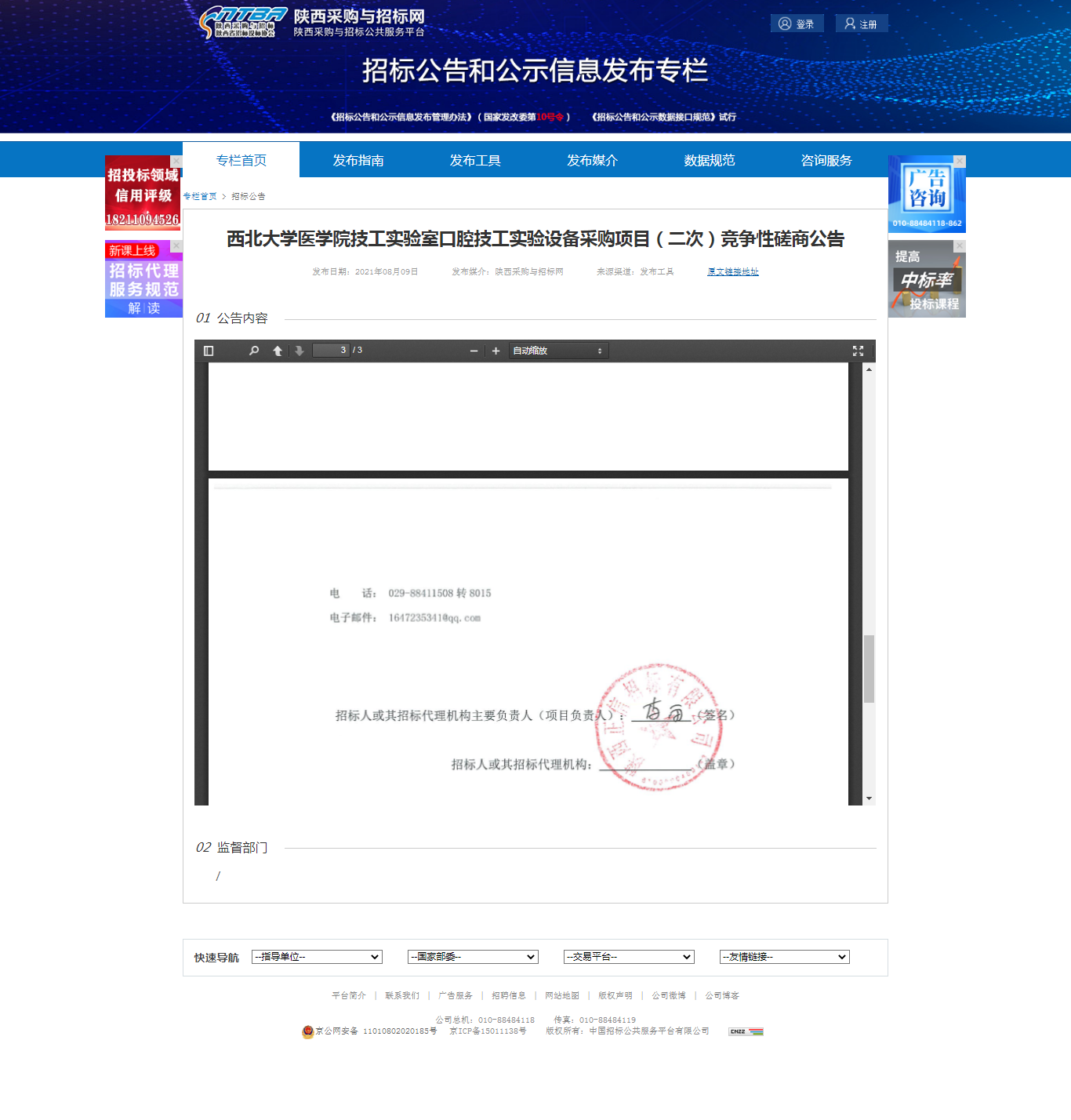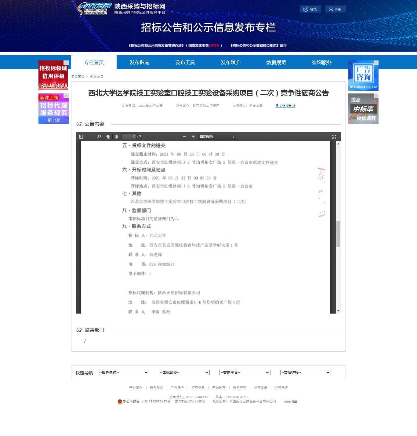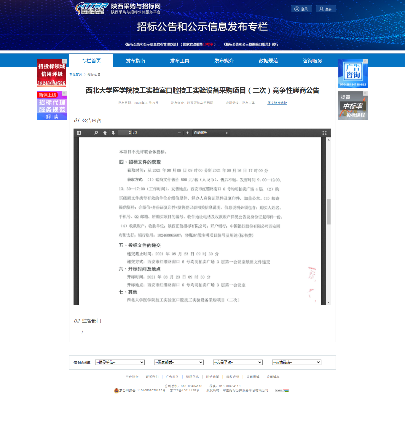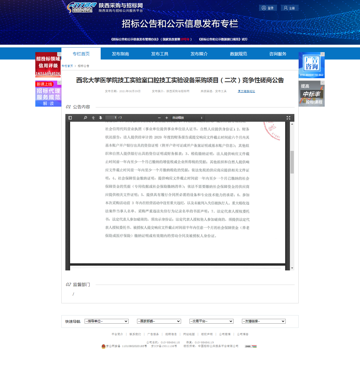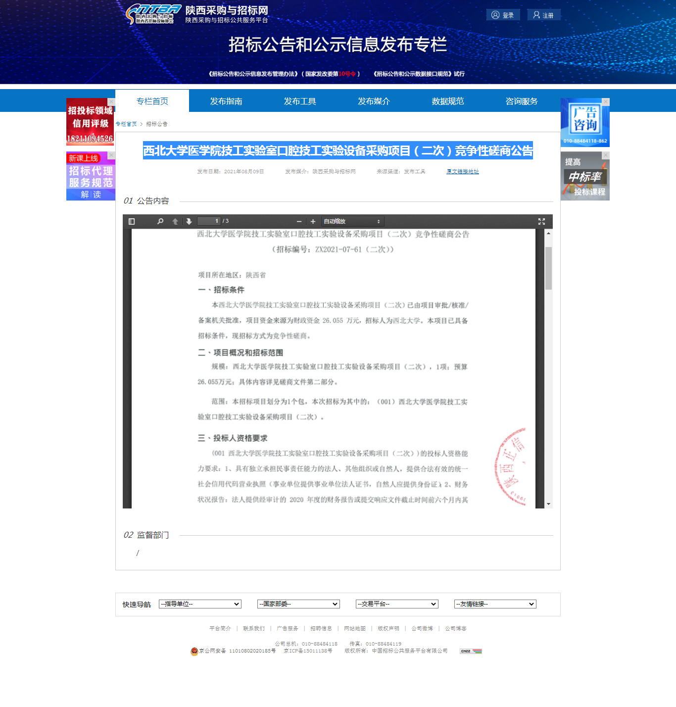 MILAN.COM医学院技工实验室口腔技工实验设备采购项目(二次)竞争性磋商公告 作者: 编辑:采购与招标办公室 时间:2021-08-09 原公告地址:http://bulletin.sntba.com/biddingBulletin/2021-08-09/328931.html