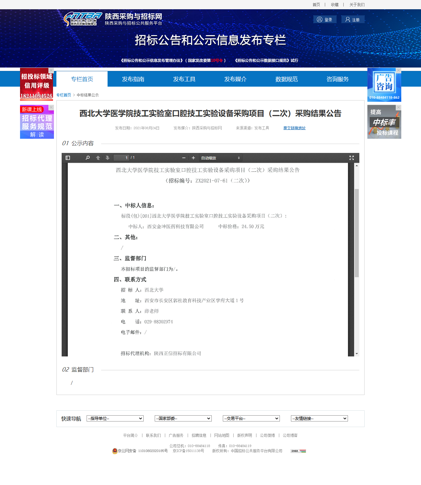 MILAN.COM医学院技工实验室口腔技工实验设备采购项目(二次)采购结果公告 作者: 编辑:采购与招标办公室 时间:2021-08-24 原公告地址:http://bulletin.sntba.com/resultBulletin/2021-08-24/334778.html