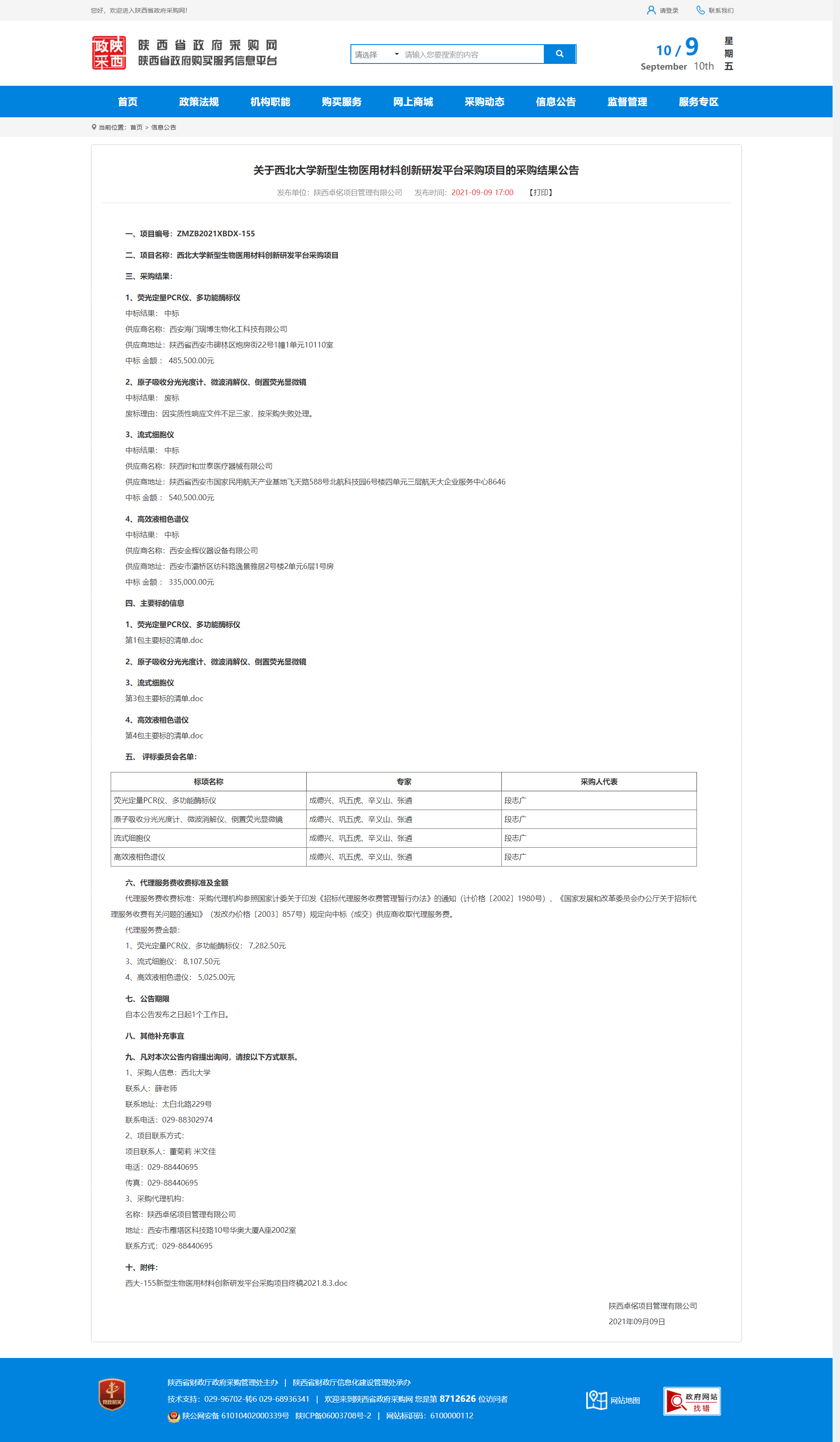 关于MILAN.COM新型生物医用材料创新研发平台采购项目的采购结果公告 作者: 编辑:采购与招标办公室 时间:2021-09-10 原公告地址:http://www.ccgp-shaanxi.gov.cn/notice/noticeDetail.do?noticeguid=8a85be347bc00296017bc9c746595f00