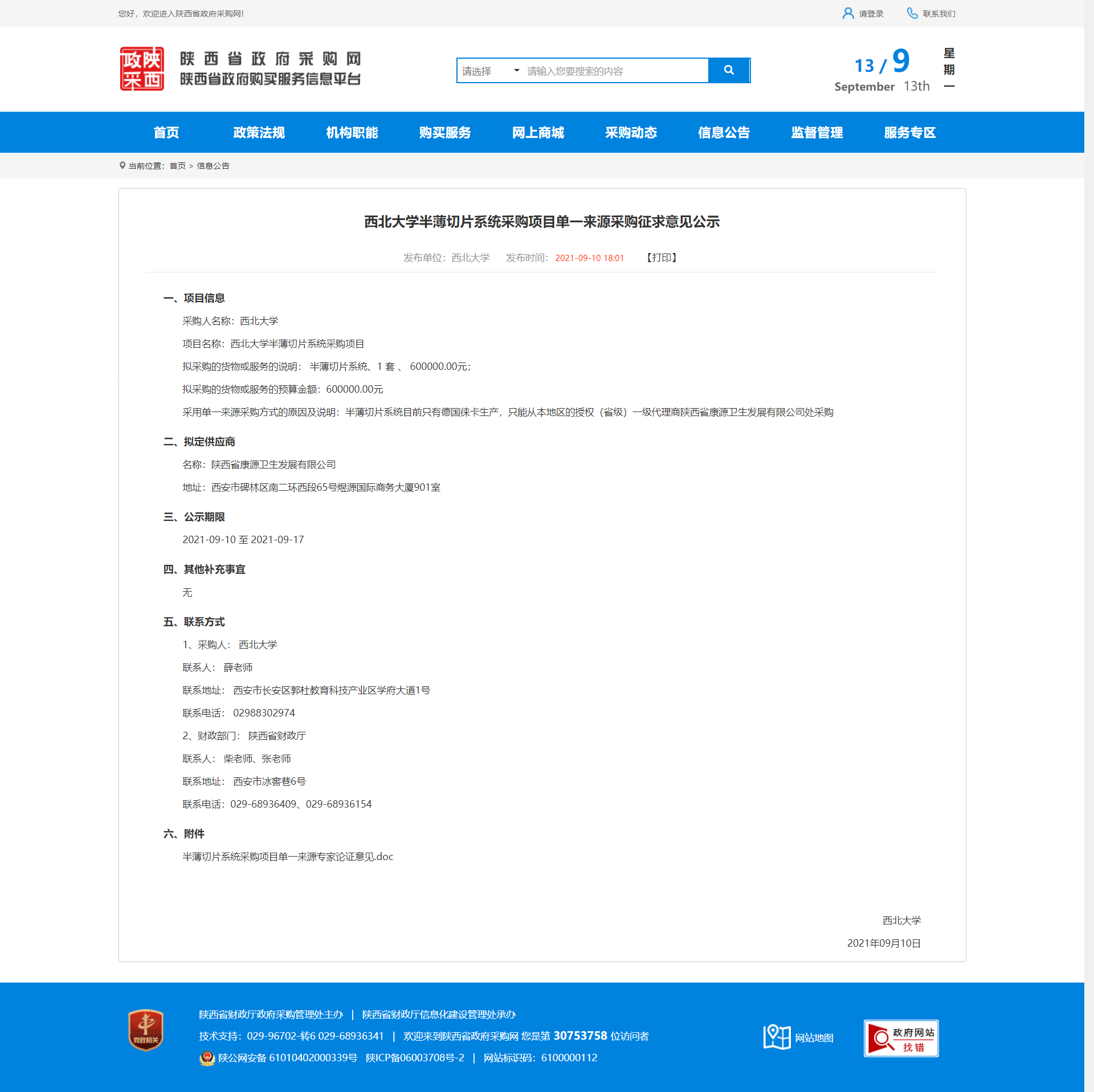 MILAN.COM半薄切片系统采购项目单一来源采购征求意见公示 作者: 编辑:采购与招标办公室 时间:2021-09-13 原公告地址:http://www.ccgp-shaanxi.gov.cn/notice/noticeDetail.do?noticeguid=8a85be347bc00296017bcf1dba3d1059