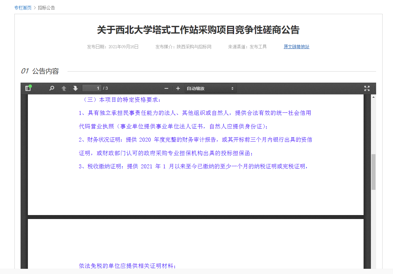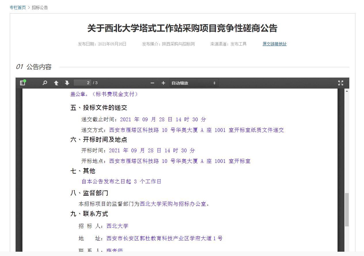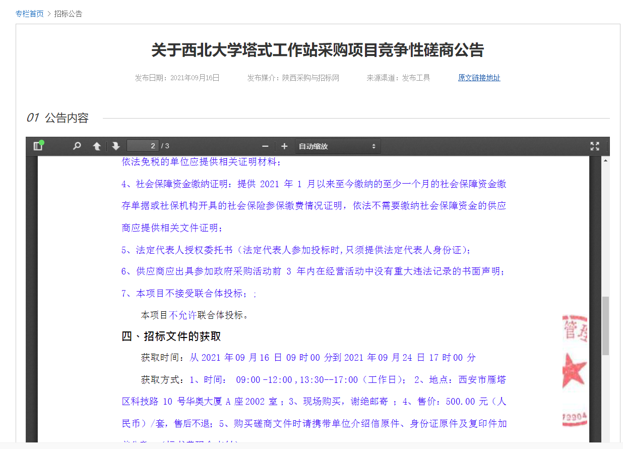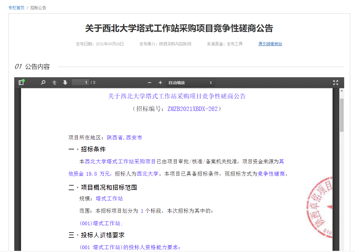 关于MILAN.COM塔式工作站采购项目竞争性磋商公告 作者: 编辑:采购与招标办公室 时间:2021-09-17 原公告地址:http://bulletin.sntba.com/biddingBulletin/2021-09-16/343853.html