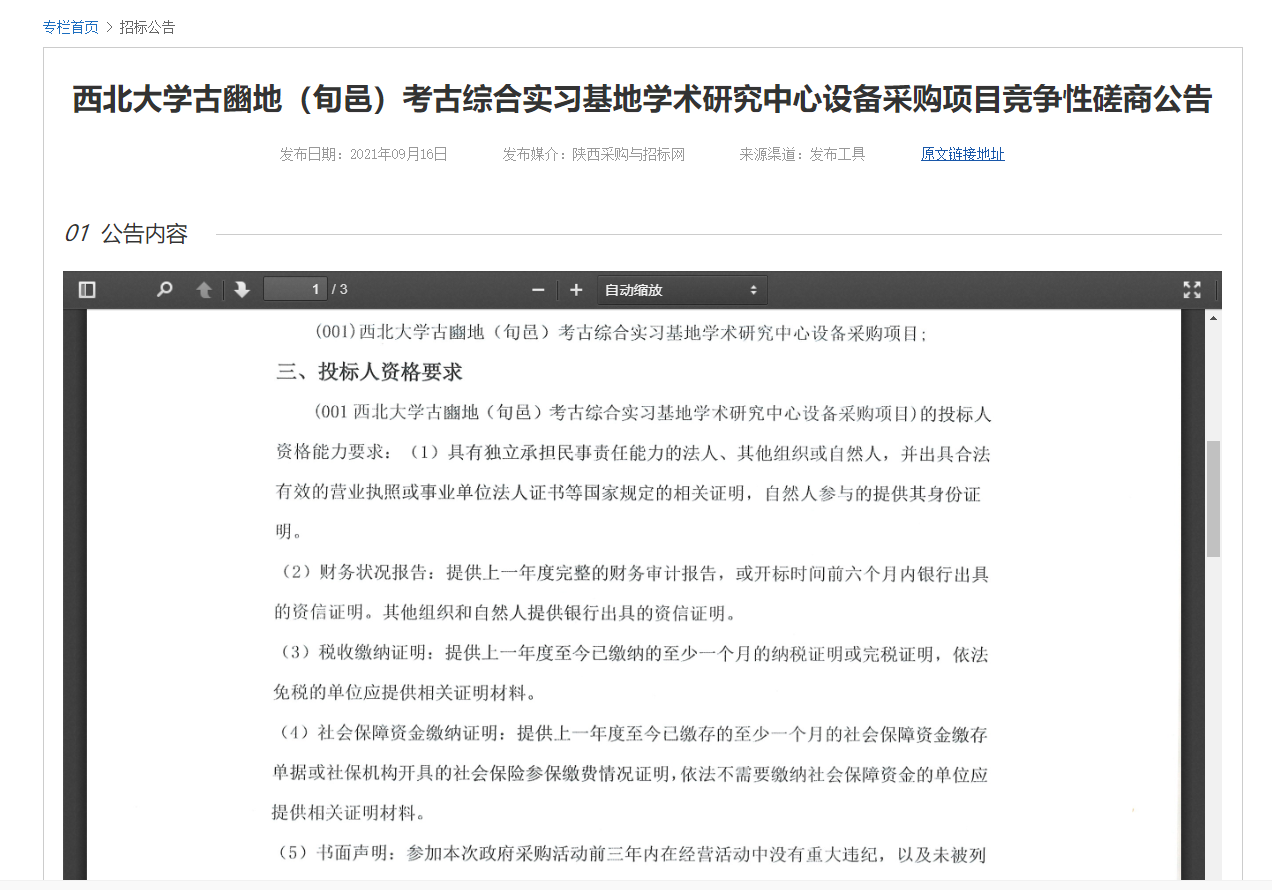 MILAN.COM古豳地(旬邑)考古综合实习基地学术研究中心设备采购项目竞争性磋商公告 作者: 编辑:采购与招标办公室 时间:2021-09-17 原公告地址:http://bulletin.sntba.com/biddingBulletin/2021-09-16/343879.html