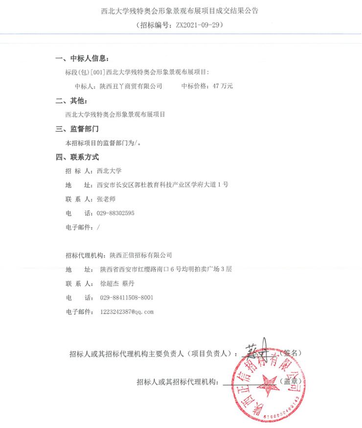 关于MILAN.COM残特奥会形象景观布展项目成交结果公告