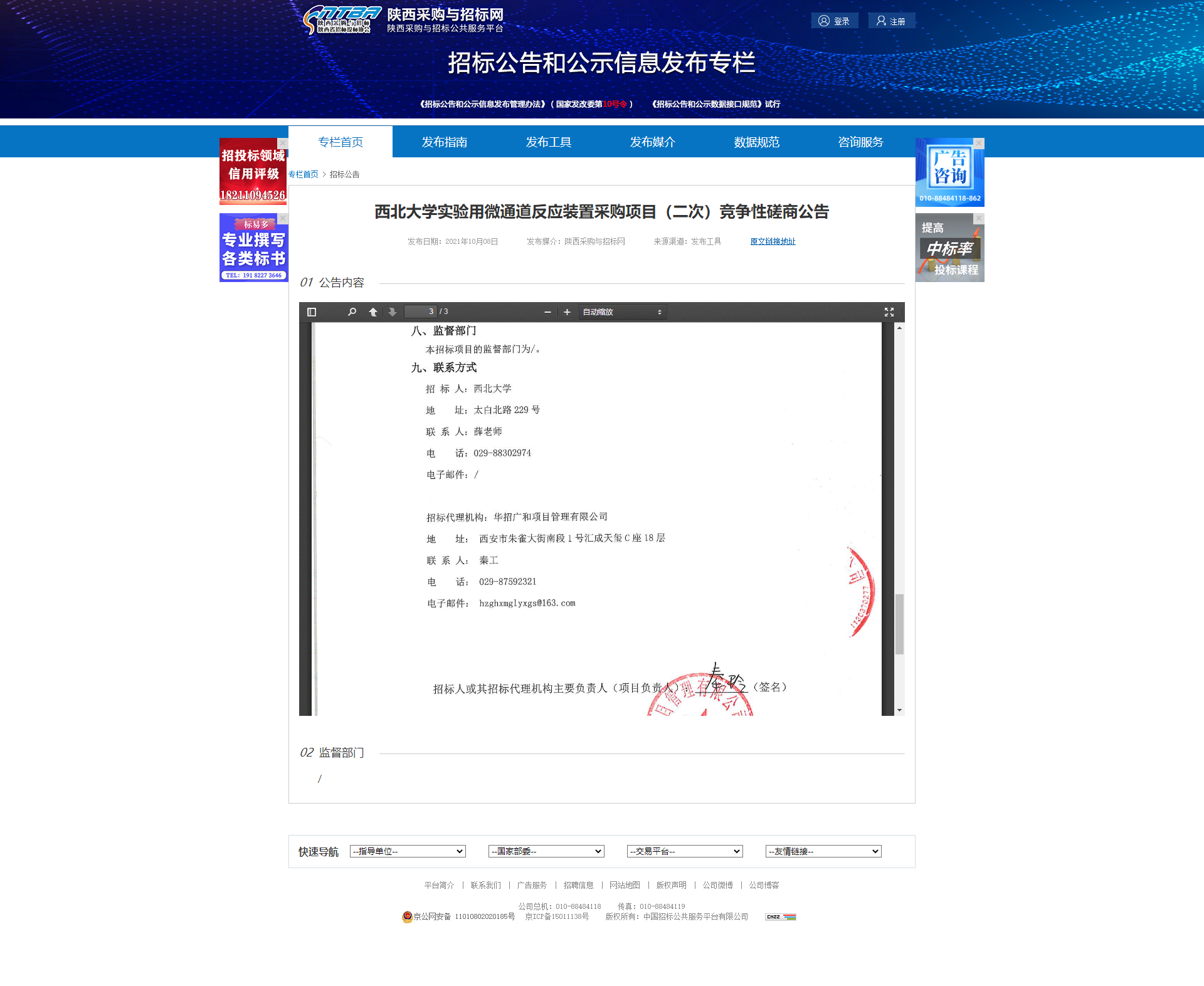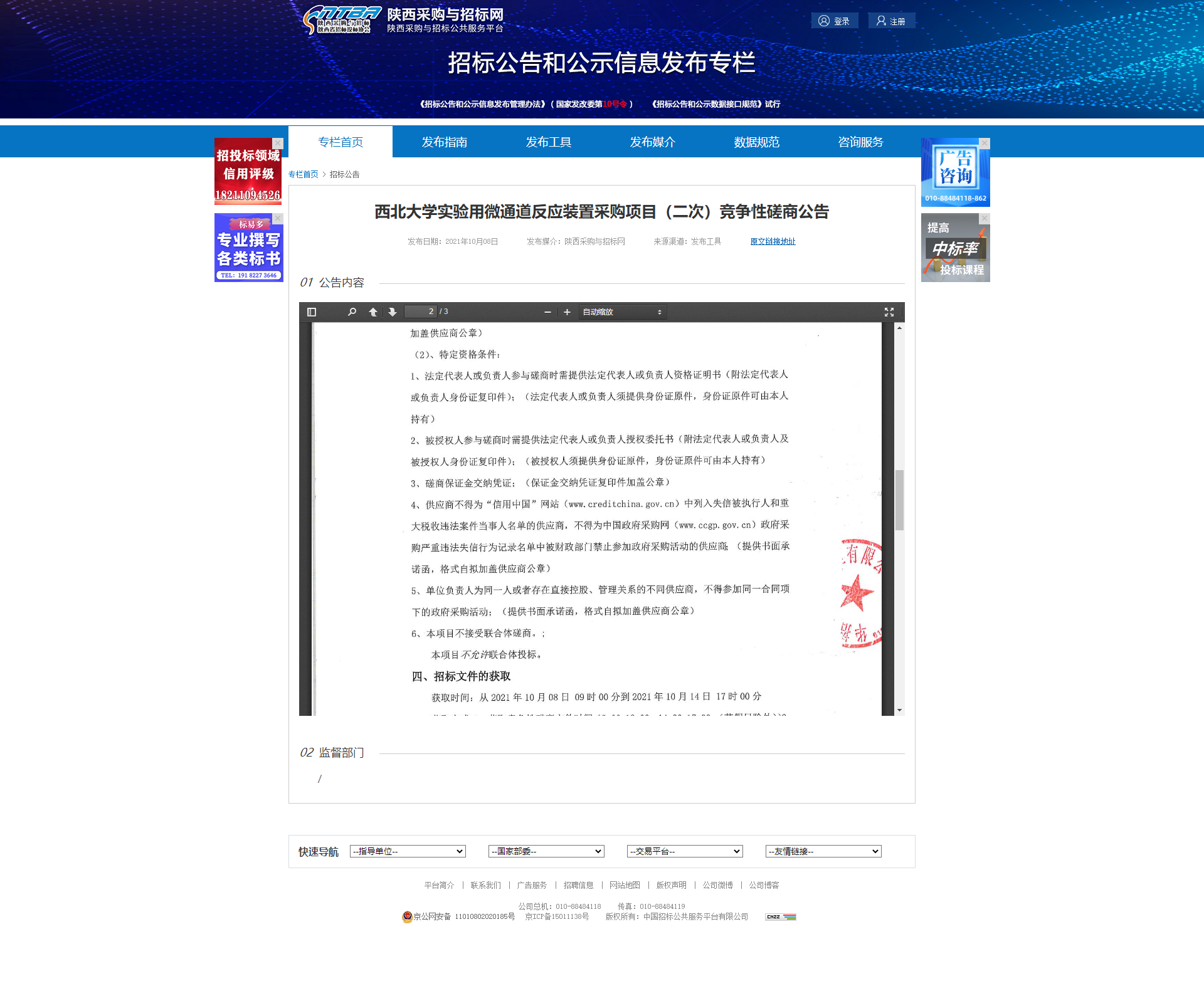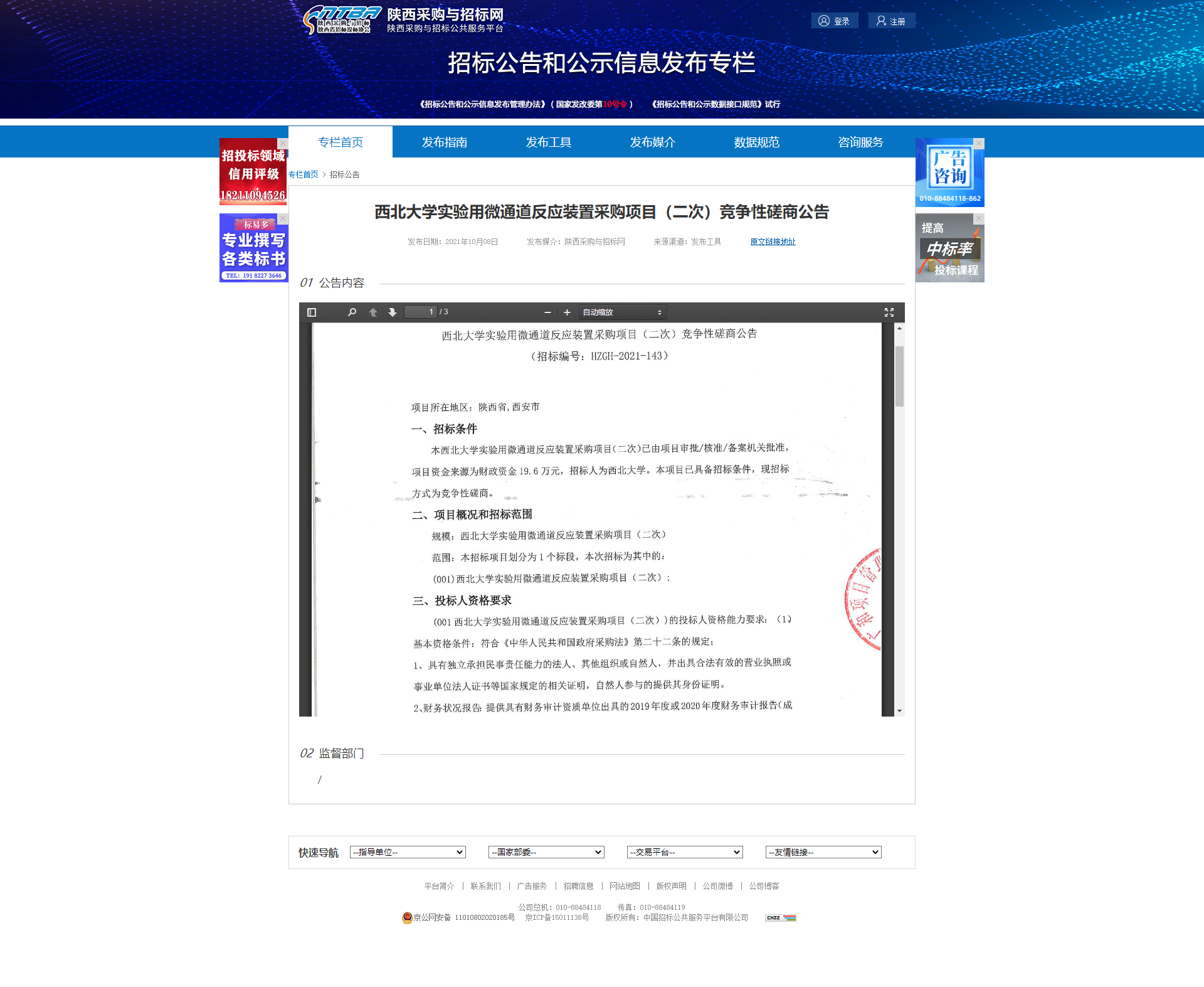 MILAN.COM实验用微通道反应装置采购项目(二次)竞争性磋商公告 作者: 编辑:采购与招标办公室 时间:2021-10-08 原公告地址:http://bulletin.sntba.com/biddingBulletin/2021-10-08/350195.html