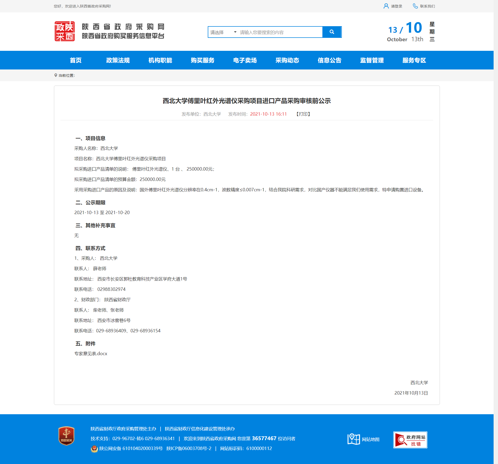 MILAN.COM傅里叶红外光谱仪采购项目进口产品采购审核前公示 作者: 编辑:采购与招标办公室 时间:2021-10-13 原公告地址:http://www.ccgp-shaanxi.gov.cn/notice/noticeDetail.do?noticeguid=8a85be327c20d508017c78afc0e74db6