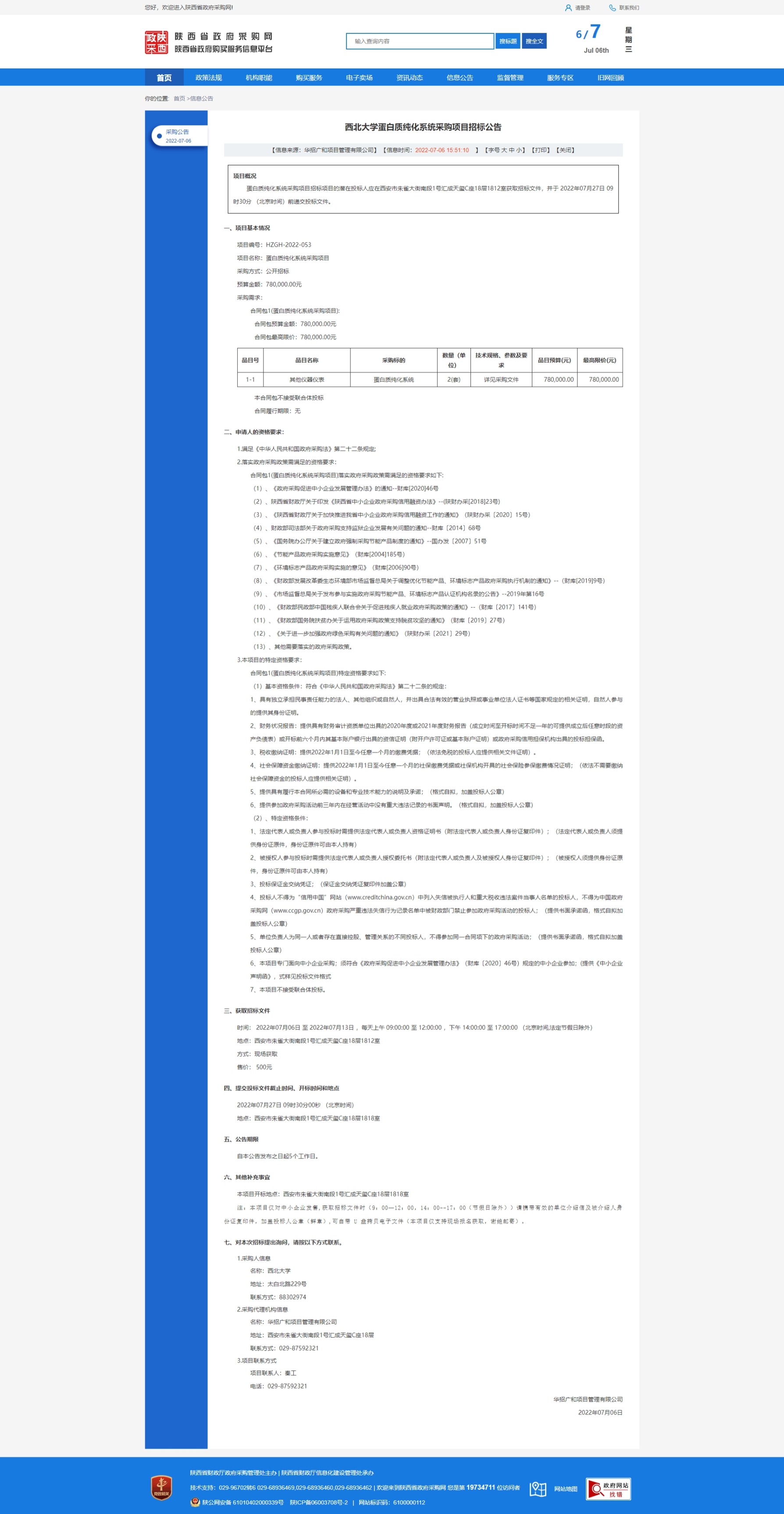 MILAN.COM蛋白质纯化系统采购项目招标公告 作者: 编辑:采购与招标办公室 时间:2022-07-06 原公告链接:http://www.ccgp-shaanxi.gov.cn/freecms/site/shaanxi/ggxx/info/2022/8a69c8f3812f549f0181d26b968a5f80.html?noticeType=001011¬iceId=bfc1034f-fd00-11ec-9a8e-08c0eb20c666