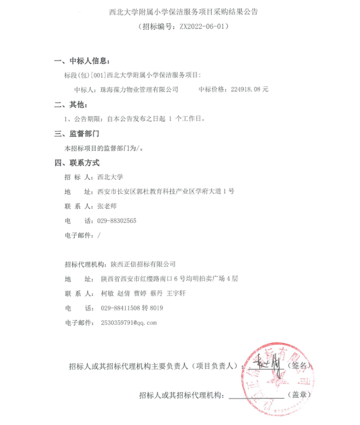 关于MILAN.COM附属小学保洁服务项目采购结果公告
