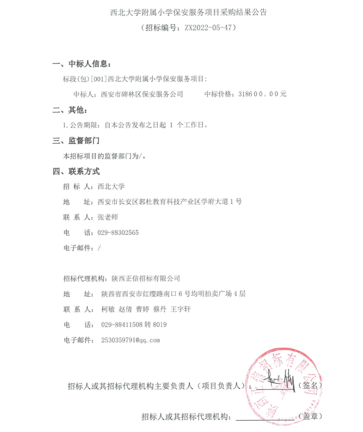 关于MILAN.COM附属小学保安服务项目采购结果公告
