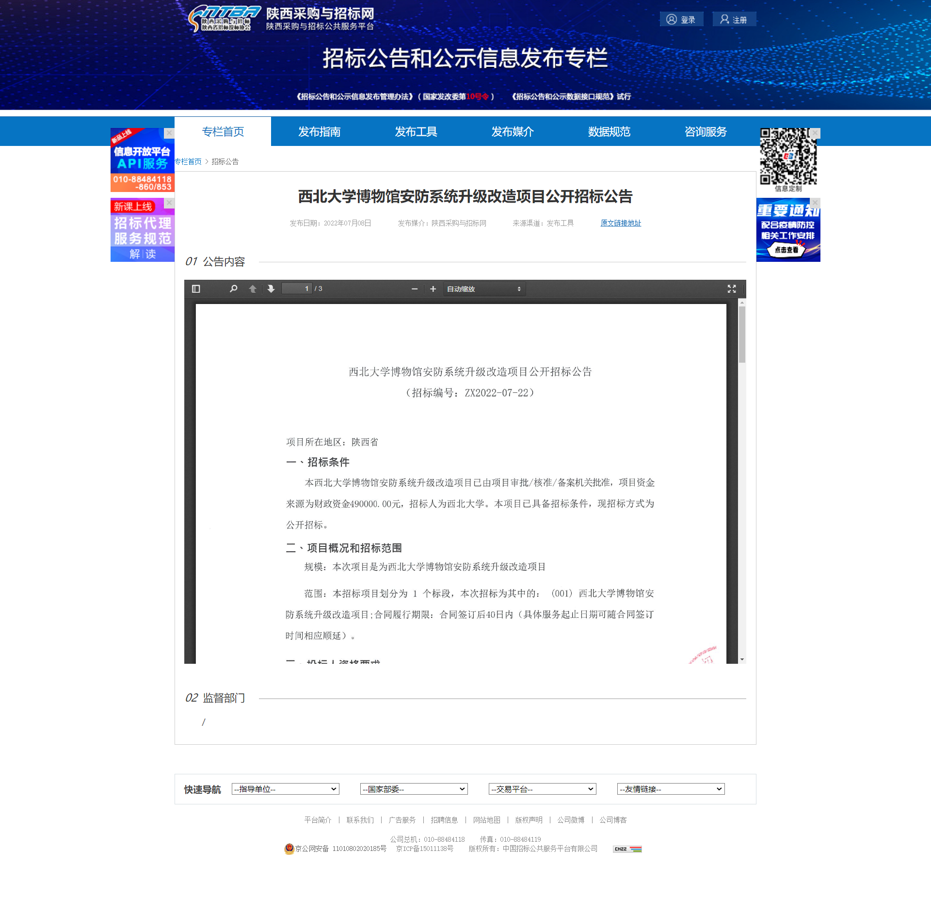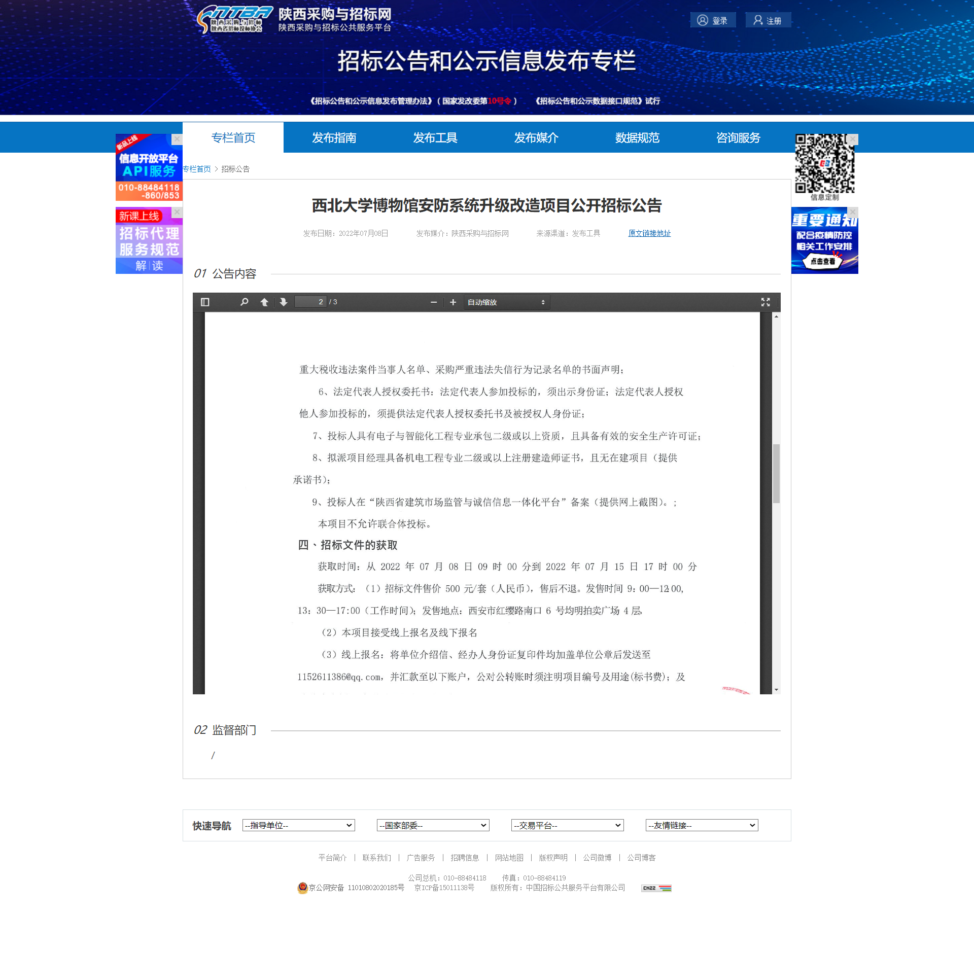 MILAN.COM博物馆安防系统升级改造项目公开招标公告 作者: 编辑:薛利娟 时间:2022-07-08 原公告链接:http://bulletin.sntba.com/biddingBulletin/2022-07-08/445128.html