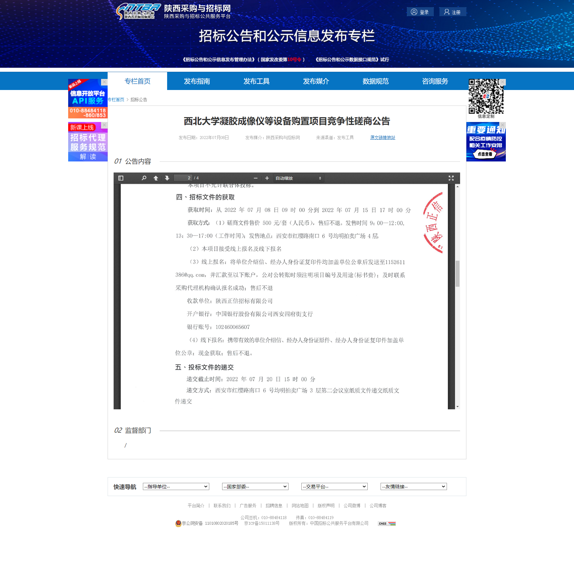 MILAN.COM凝胶成像仪等设备购置项目竞争性磋商公告 作者: 编辑:薛利娟 时间:2022-07-08 原公告链接:http://bulletin.sntba.com/biddingBulletin/2022-07-08/445120.html