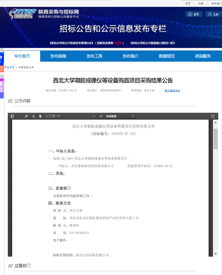 MILAN.COM凝胶成像仪等设备购置项目采购结果公告 作者: 编辑:薛利娟 时间:2022-07-21 原公告链接:http://bulletin.sntba.com/resultBulletin/2022-07-21/450755.html