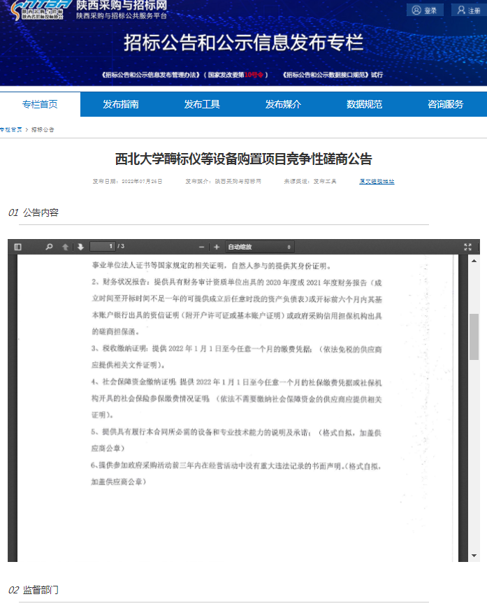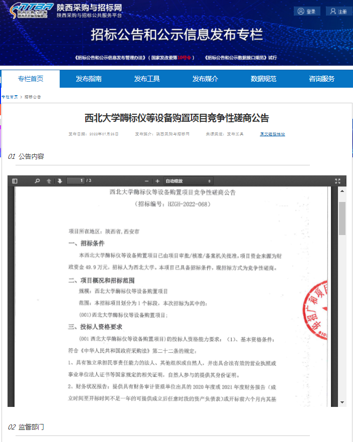 MILAN.COM酶标仪等设备购置项目竞争性磋商公告 作者: 编辑:采购与招标办公室 时间:2022-07-26 原公告链接:http://bulletin.sntba.com/biddingBulletin/2022-07-26/452921.html