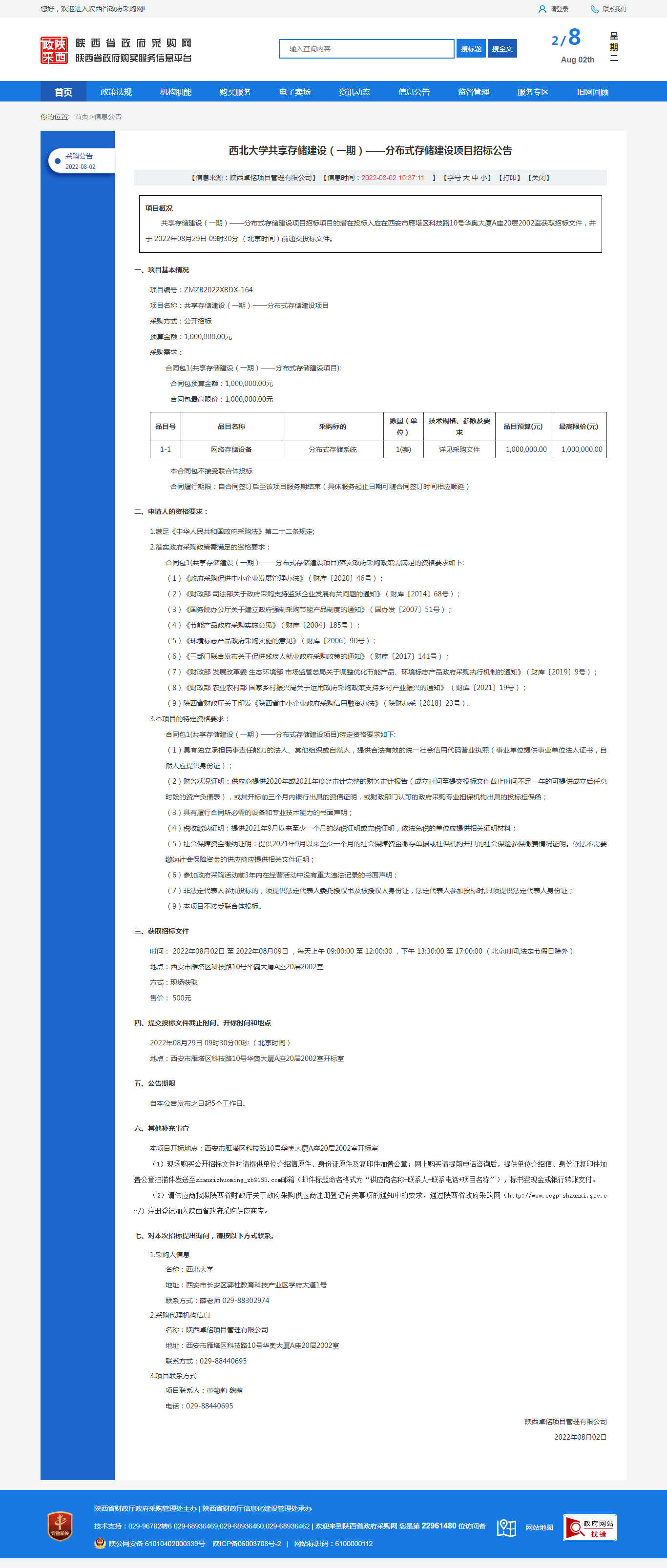 MILAN.COM共享存储建设(一期)——分布式存储建设项目招标公告 作者: 编辑:采购与招标办公室 时间:2022-08-02 原公告链接:http://www.ccgp-shaanxi.gov.cn/freecms/site/shaanxi/ggxx/info/2022/8a69c8308238f00301825cf936ec1904.html?noticeType=001011¬iceId=565bf0b7-1236-11ed-9a8e-08c0eb20c666