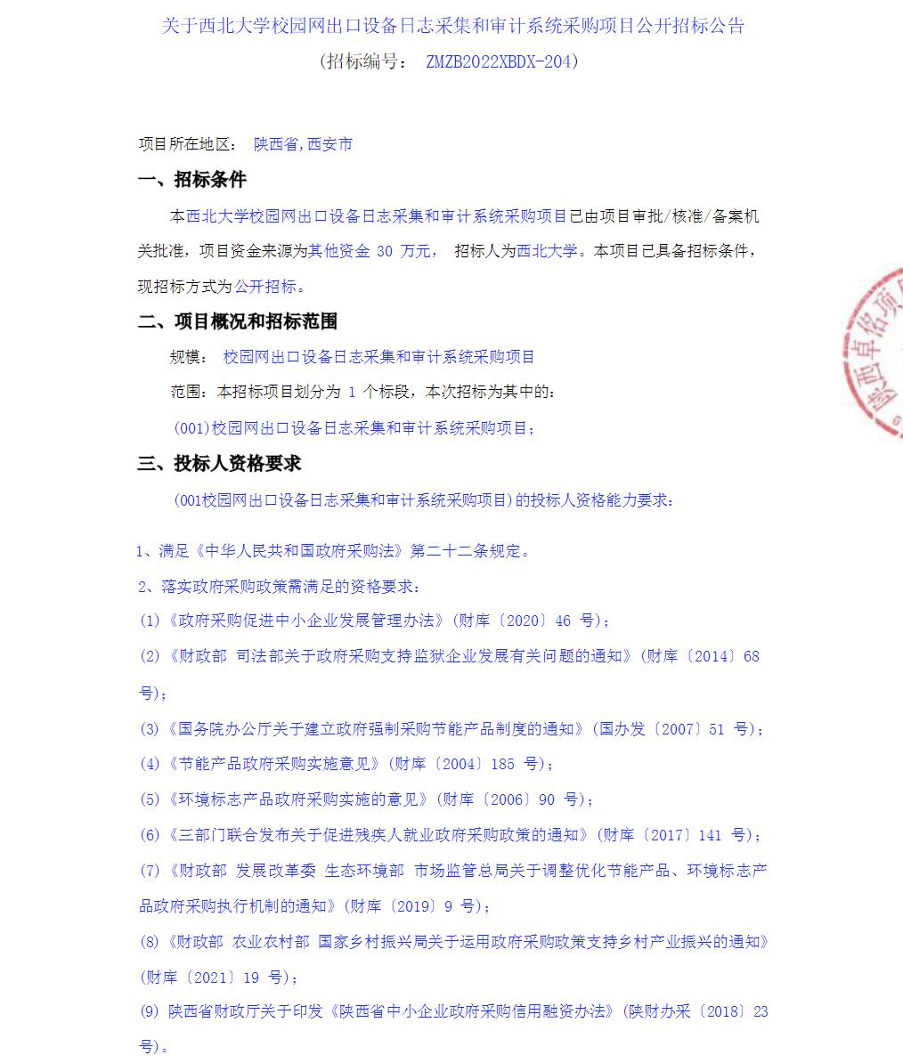 MILAN.COM校园网出口设备日志采集和审计系统采购项目公开招标公告