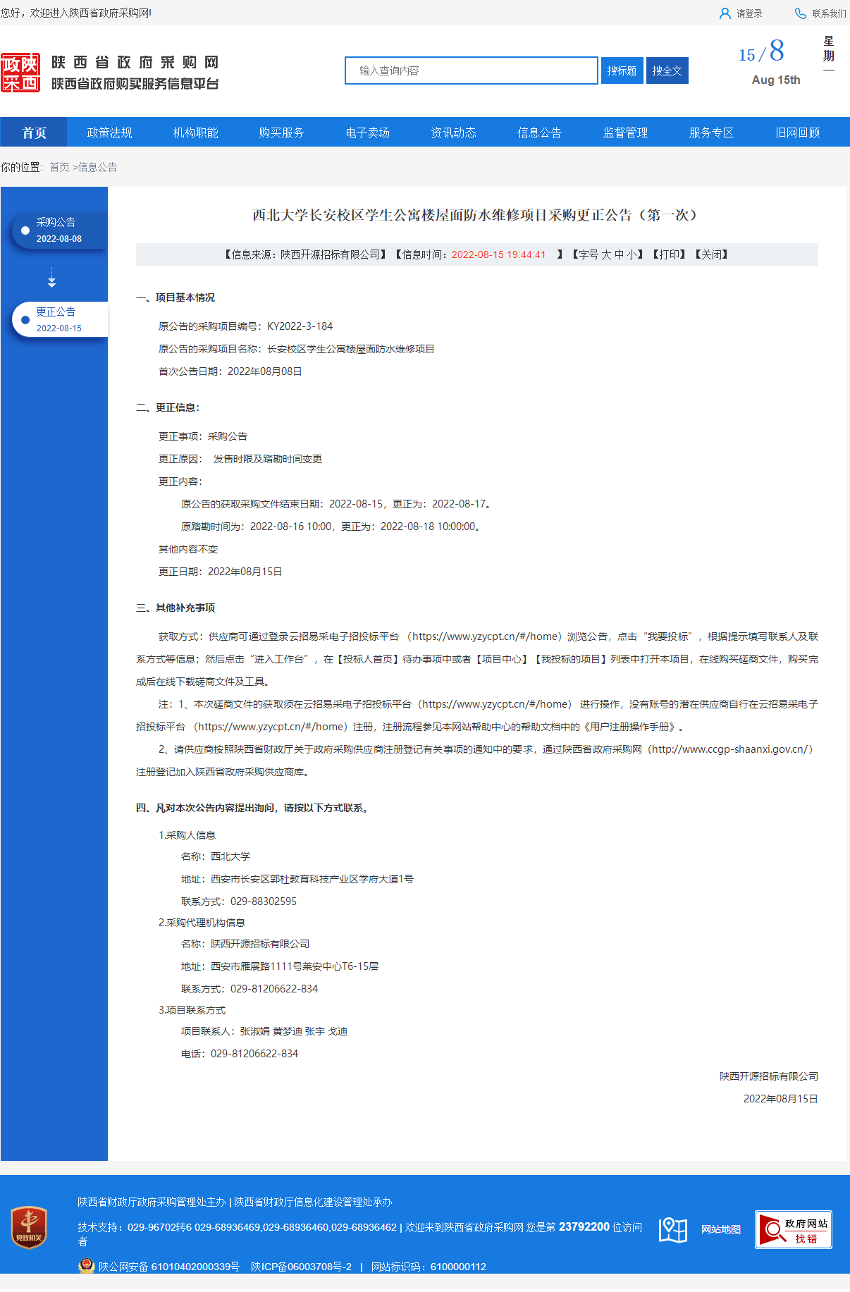 MILAN.COM长安校区学生公寓楼屋面防水维修项目采购更正公告(第一次)