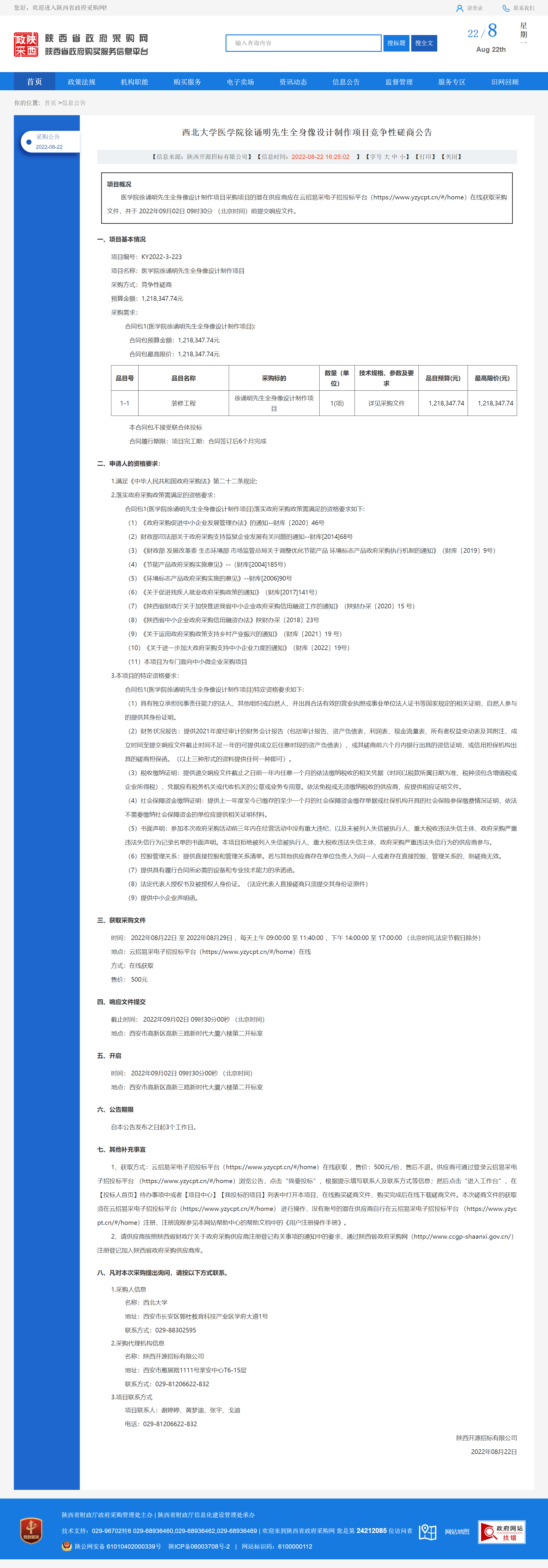 MILAN.COM医学院徐诵明先生全身像设计制作项目竞争性磋商公告