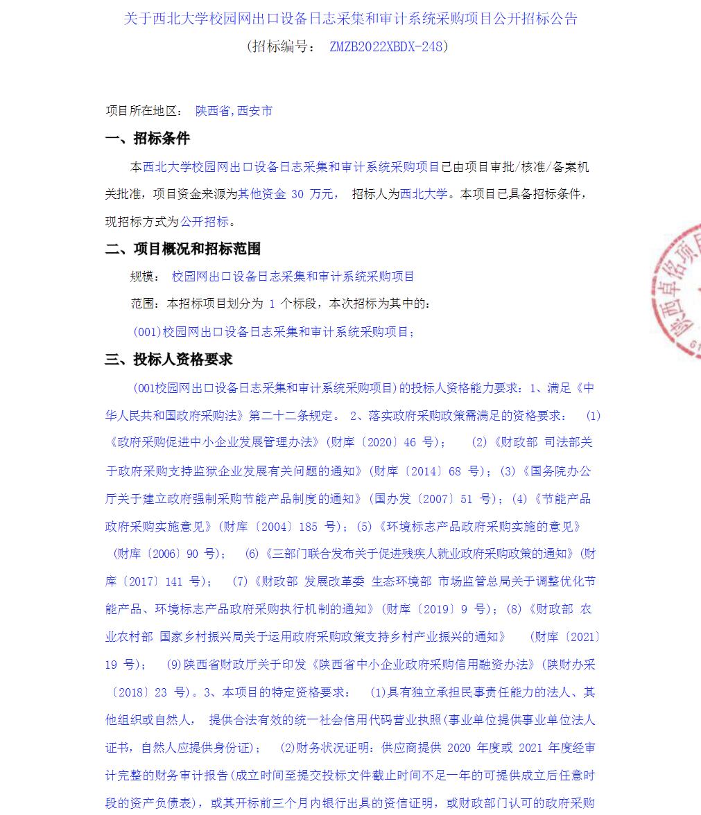 关于MILAN.COM校园网出口设备日志采集和审计系统采购项目公开招标公告