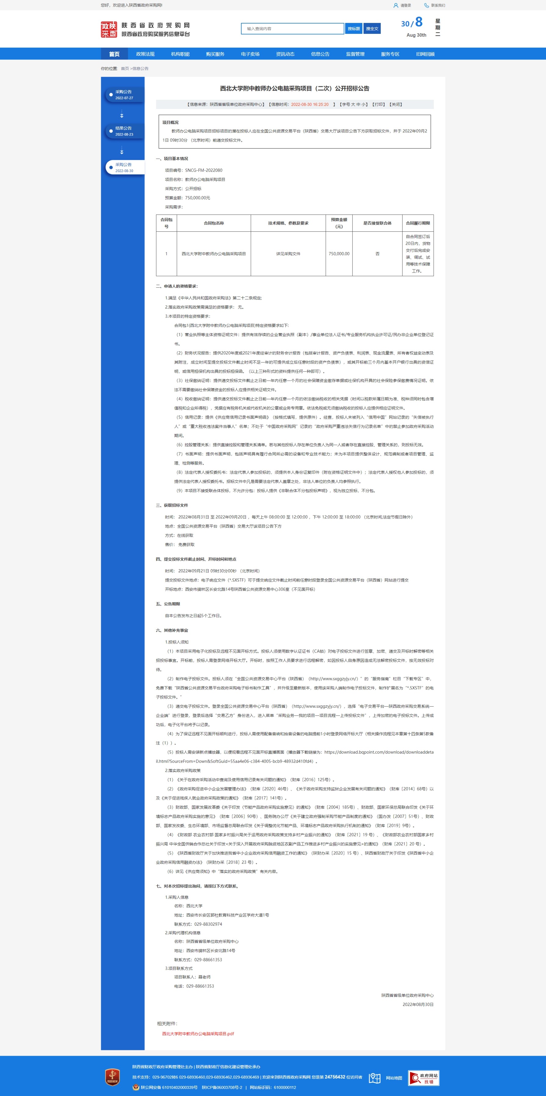 MILAN.COM附中教师办公电脑采购项目(二次)公开招标公告 作者: 编辑:采购与招标办公室 时间:2022-08-30 原公告链接:http://www.ccgp-shaanxi.gov.cn/freecms/site/shaanxi/ggxx/info/2022/8a69c78482a320a20182e77edfee440c.html?noticeType=001011¬iceId=c2087d0f-283d-11ed-9a8e-08c0eb20c666