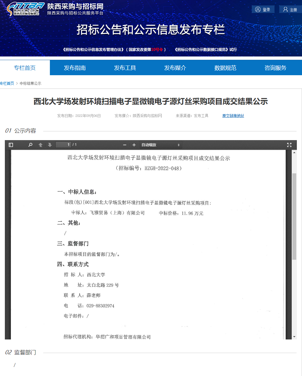 MILAN.COM场发射环境扫描电子显微镜电子源灯丝采购项目成交结果公示 作者: 编辑:采购与招标办公室 时间:2022-09-06 原公告链接:http://bulletin.sntba.com/resultBulletin/2022-09-06/471051.html