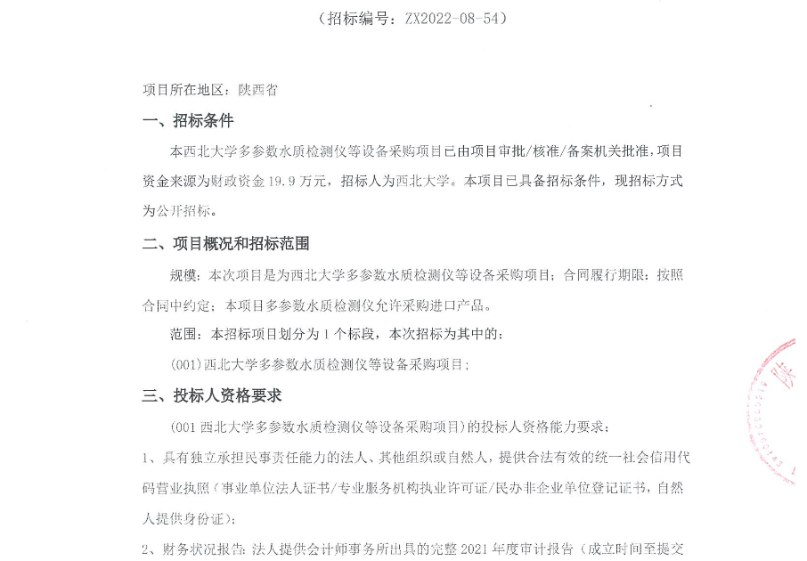 MILAN.COM多参数水质检测仪等设备采购项目公开招标公告 作者: 编辑:采购与招标办公室 时间:2022-11-03 原公告链接:http://bulletin.sntba.com/biddingBulletin/2022-11-03/494214.html