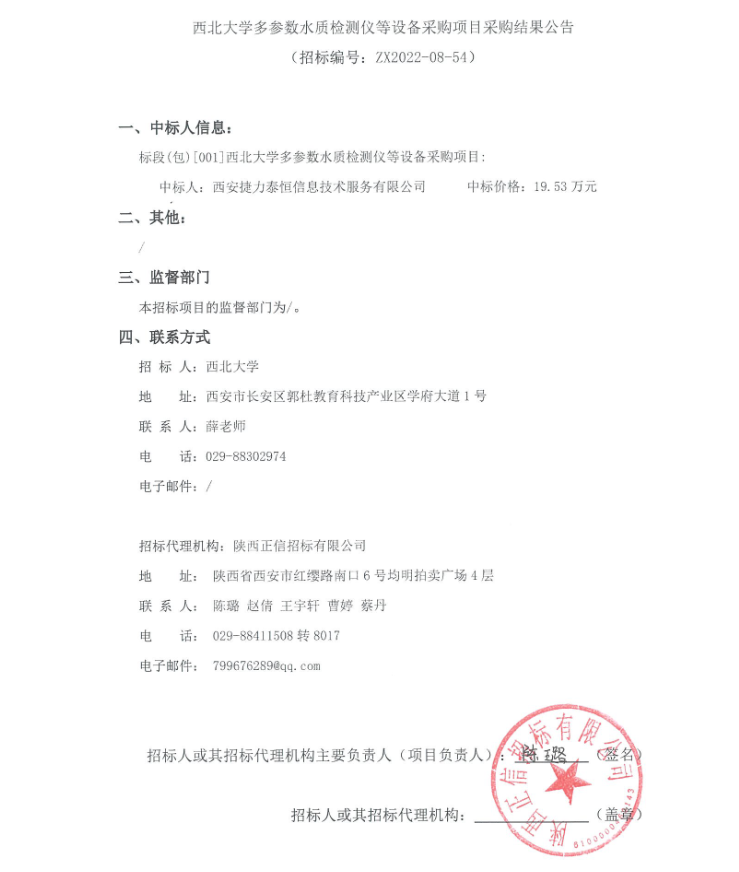 MILAN.COM多参数水质检测仪等设备采购项目采购结果公告