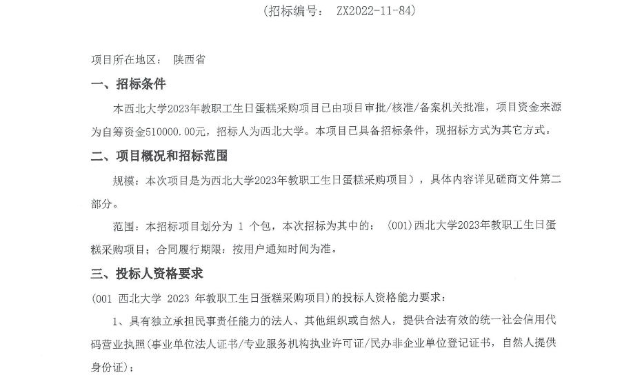 MILAN.COM2023年教职工生日蛋糕采购项目竞争性磋商公告 作者: 编辑:采购与招标办公室 时间:2022-11-30 原公告链接:http://bulletin.sntba.com/biddingBulletin/2022-11-30/505076.html