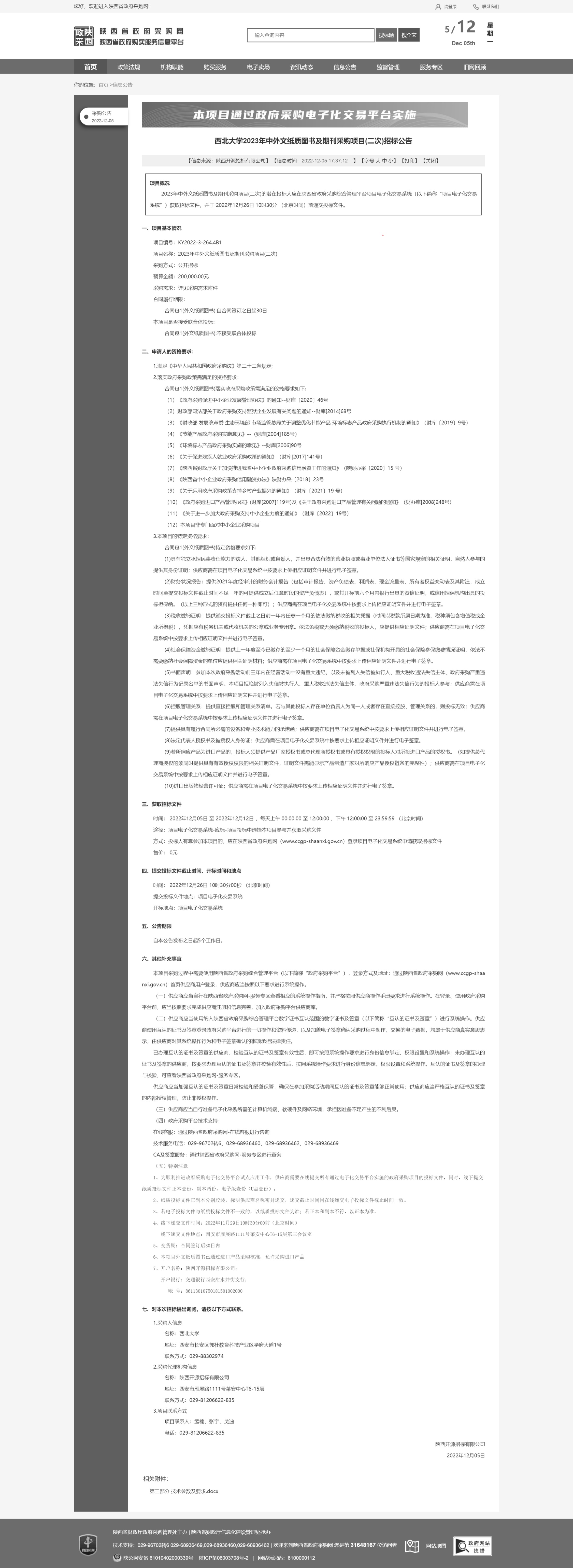 MILAN.COM2023年中外文纸质图书及期刊采购项目(二次)招标公告 作者: 编辑:采购与招标办公室 时间:2022-12-05 原公告链接:http://www.ccgp-shaanxi.gov.cn/freecms/site/shaanxi/ggxx/info/2022/8a69c4c88405ac2f0184e158100f1f34.html?noticeType=001011¬iceId=14b89779-7481-11ed-9a8e-08c0eb20c666 变更公告链接:http://www.ccgp-shaanxi.gov.cn/freecms/site/shaanxi/ggxx/info/2022/8a69c1948405afd90184e1f2cad177e9.html?noticeType=001031¬iceId=9c8f3b6f-748e-11ed-9a8e-08c0eb20c666