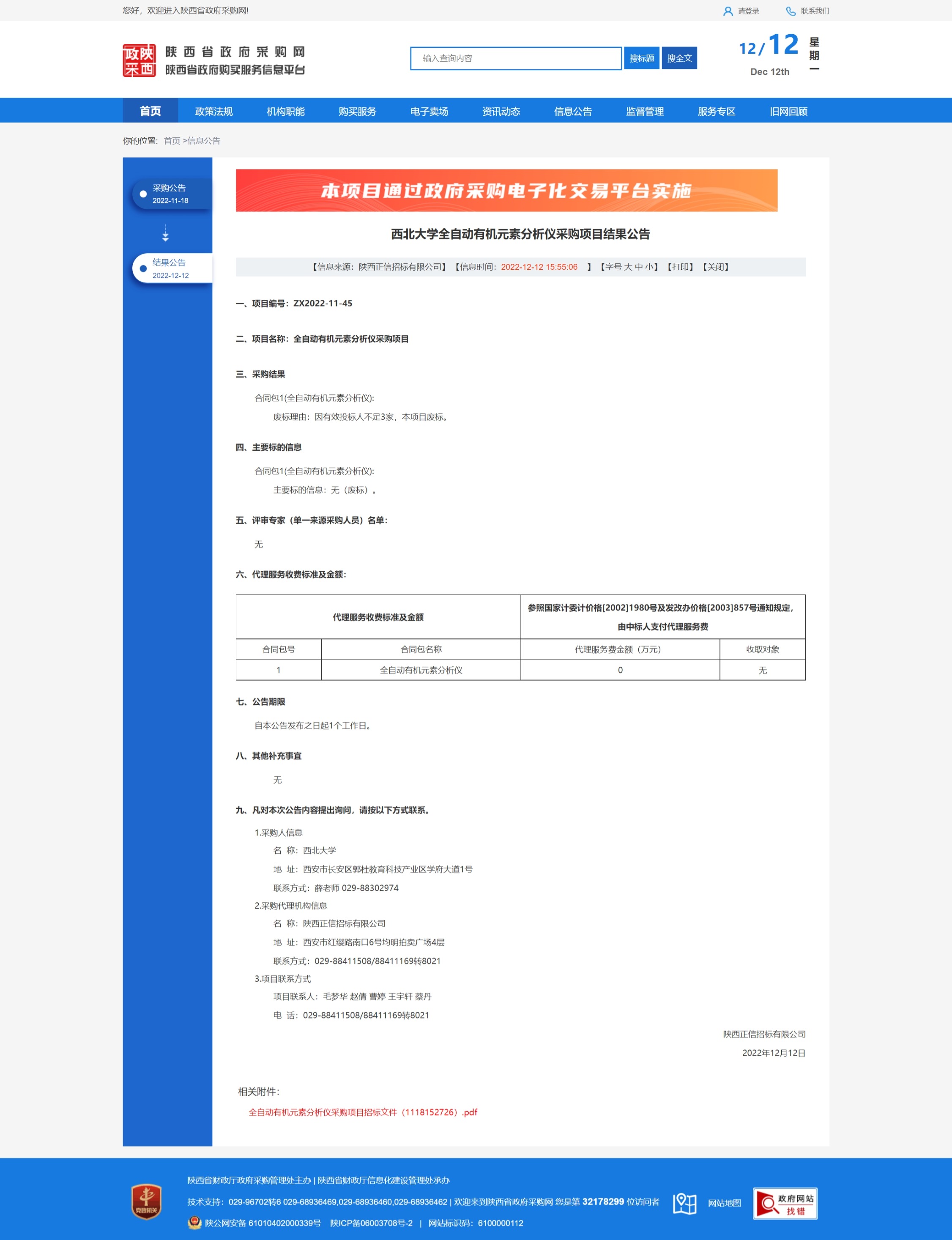 MILAN.COM全自动有机元素分析仪采购项目结果公告 作者: 编辑:采购与招标办公室 时间:2022-12-12 原公告链接:http://www.ccgp-shaanxi.gov.cn/freecms/site/shaanxi/ggxx/info/2022/8a69c86384ea4cb5018504dda82a5145.html?noticeType=001006¬iceId=fc98d5c7-79f2-11ed-9a8e-08c0eb20c666