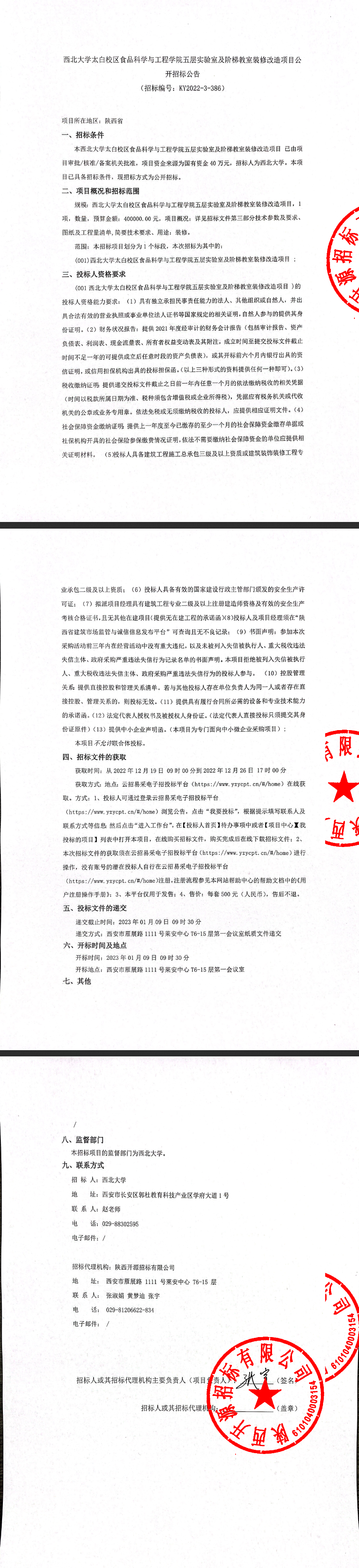 MILAN.COM太白校区食品科学与工程学院五层实验室及阶梯教室装修改造项目公开招标公告