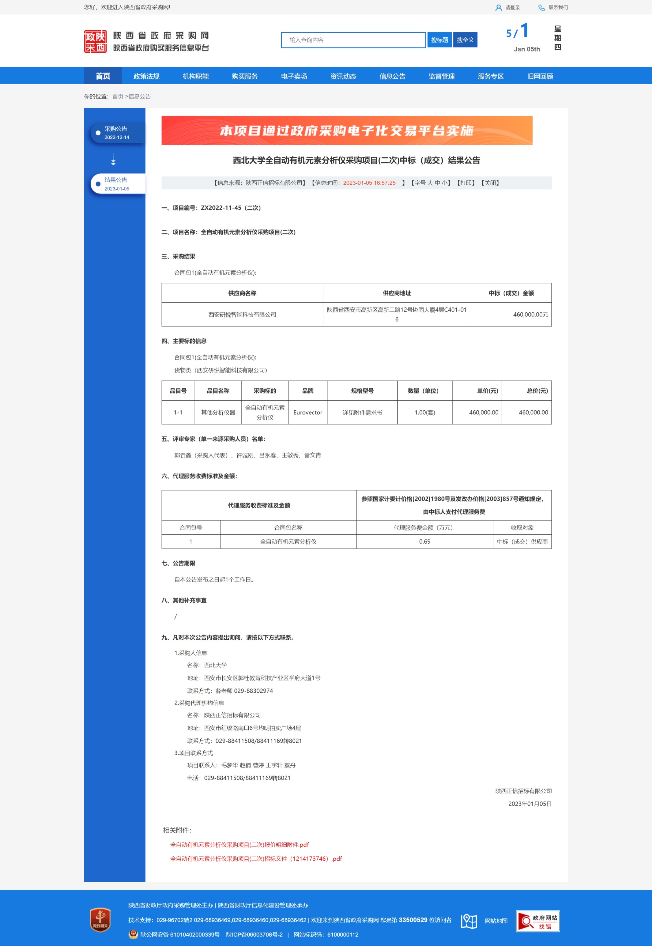 MILAN.COM全自动有机元素分析仪采购项目(二次)中标(成交)结果公告 作者: 编辑:采购与招标办公室 时间:2023-01-05 原公告链接:http://www.ccgp-shaanxi.gov.cn/freecms/site/shaanxi/ggxx/info/2023/8a69c86f852dbe9b0185807f572a04d1.html?noticeType=001021¬iceId=b8ed0ed9-8cd7-11ed-9a8e-08c0eb20c666