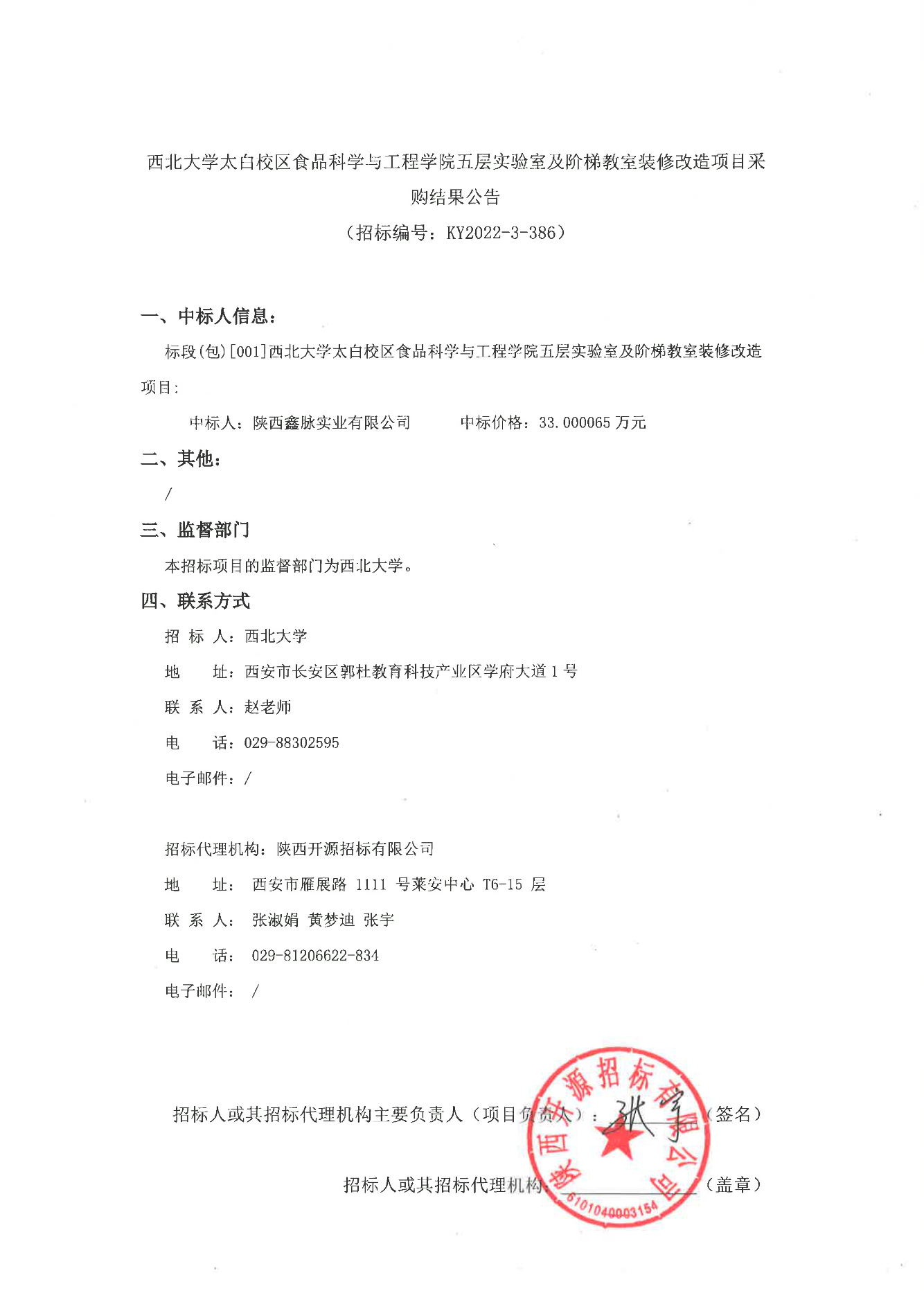 MILAN.COM太白校区食品科学与工程学院五层实验室及阶梯教室装修改造项目采购结果公告