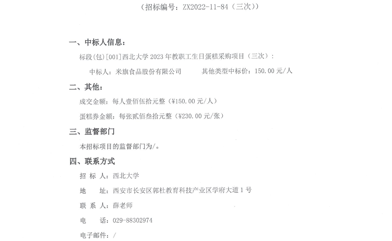 MILAN.COM2023年教职工生日蛋糕采购项目(三次)采购结果公告 作者: 编辑:采购与招标办公室 时间:2023-01-11 原公告链接:http://bulletin.sntba.com/resultBulletin/2023-01-11/520362.html