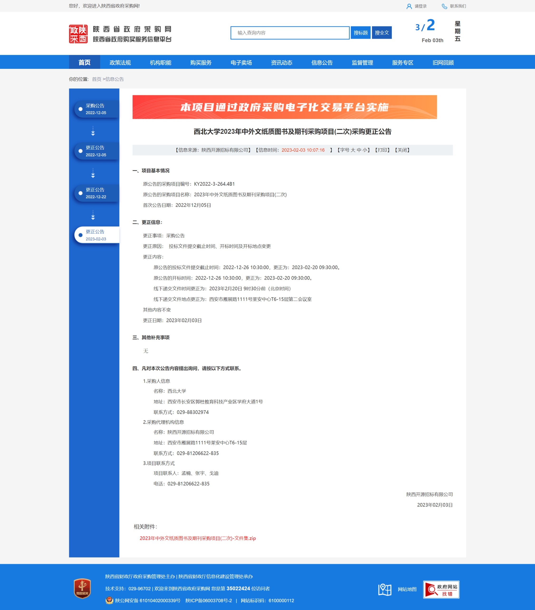 MILAN.COM2023年中外文纸质图书及期刊采购项目(二次)采购更正公告 作者: 编辑:采购与招标办公室 时间:2023-02-03 原公告链接:http://www.ccgp-shaanxi.gov.cn/freecms/site/shaanxi/ggxx/info/2023/8a69c2e7858176f101861168101b5eb5.html?noticeType=001031¬iceId=49f867d9-a368-11ed-9a8e-08c0eb20c666
