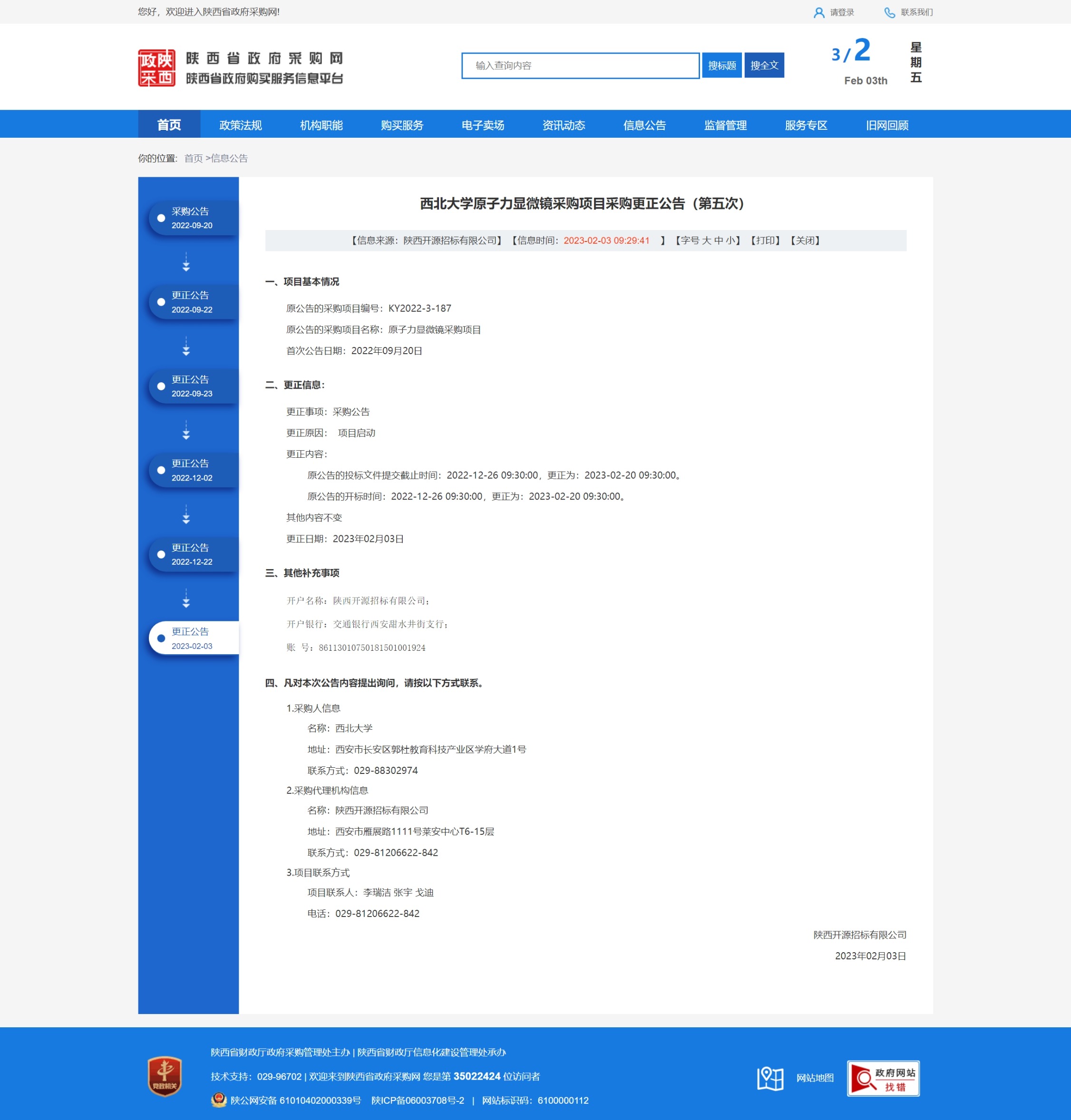 MILAN.COM原子力显微镜采购项目采购更正公告 作者: 编辑:采购与招标办公室 时间:2023-02-03 原公告链接:http://www.ccgp-shaanxi.gov.cn/freecms/site/shaanxi/ggxx/info/2023/8a69c875858179a7018614dfbb5c2585.html?noticeType=001031¬iceId=09c0ceef-a363-11ed-9a8e-08c0eb20c666