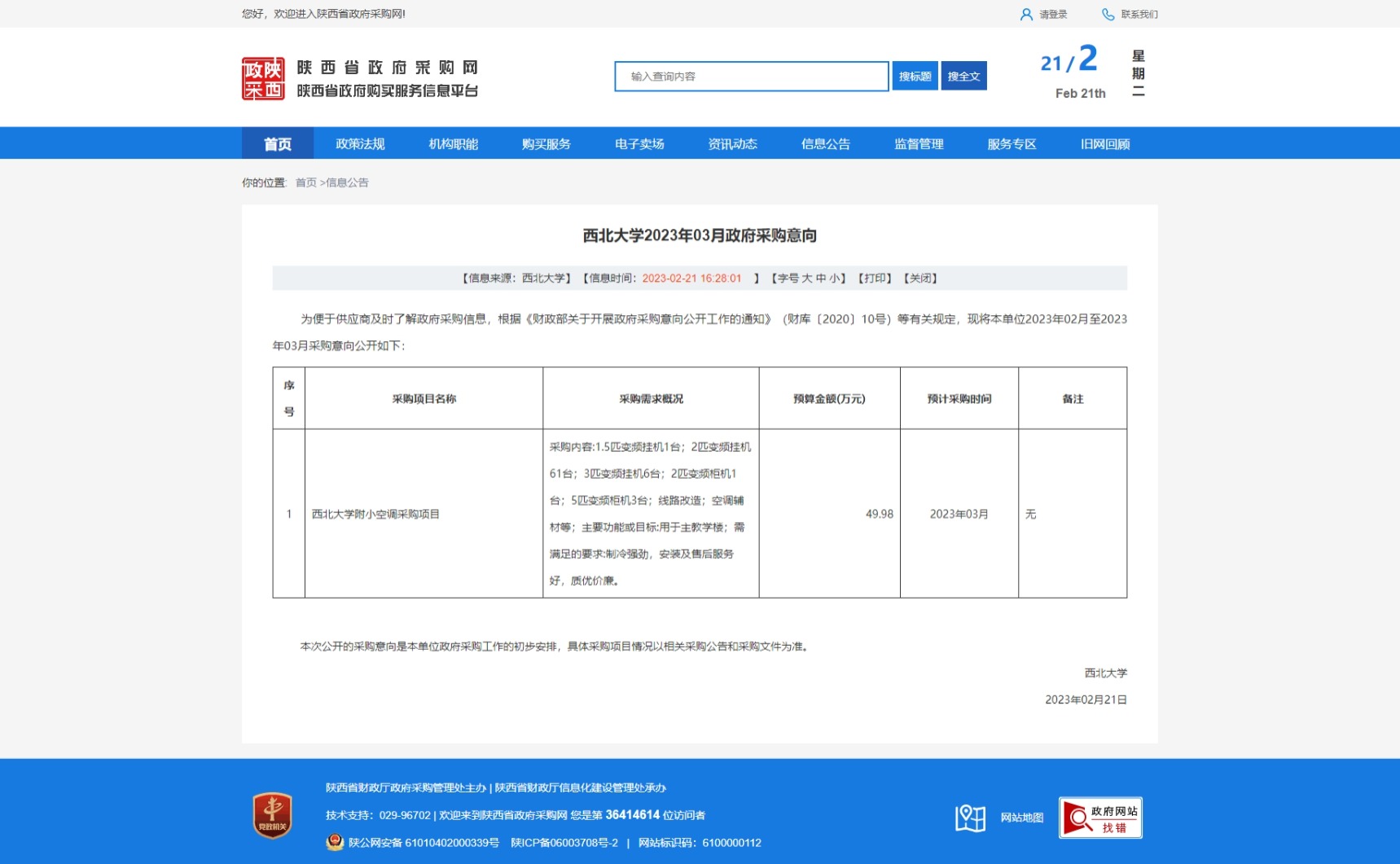 MILAN.COM2023年03月政府采购意向 作者: 编辑:MILAN.COM2023年03月政府采购意向 时间:2023-02-21 原公告链接:http://www.ccgp-shaanxi.gov.cn/freecms/site/shaanxi/ggxx/info/2023/8a69c1bf8671d1fe01867314431d2b89.html?noticeType=59¬iceId=7ee058eb-b1c2-11ed-9a8e-08c0eb20c666