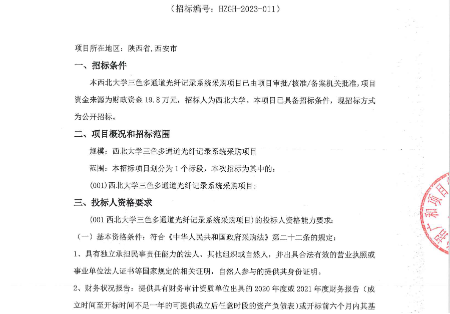 MILAN.COM三色多通道光纤记录系统采购项目招标公告 作者: 编辑:采购与招标办公室 时间:2023-03-22 原公告链接:http://bulletin.sntba.com/biddingBulletin/2023-03-21/538285.html
