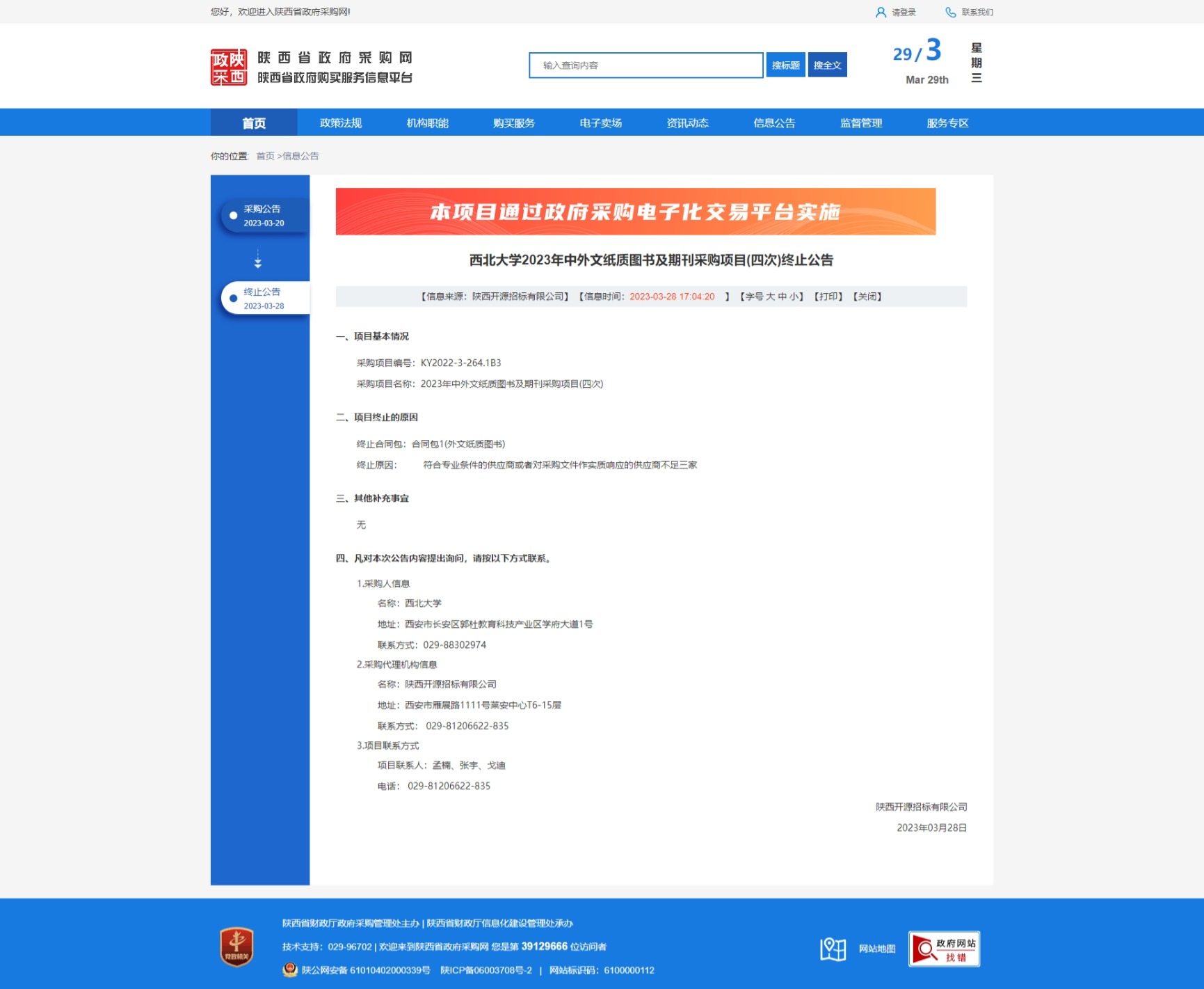 MILAN.COM2023年中外文纸质图书及期刊采购项目(四次)终止公告 作者: 编辑:采购与招标办公室 时间:2023-03-29 原公告链接:http://www.ccgp-shaanxi.gov.cn/freecms/site/shaanxi/ggxx/info/2023/8a69c402865ce80c0187274b628268bb.html?noticeType=001004¬iceId=705c8589-cd48-11ed-9a8e-08c0eb20c666
