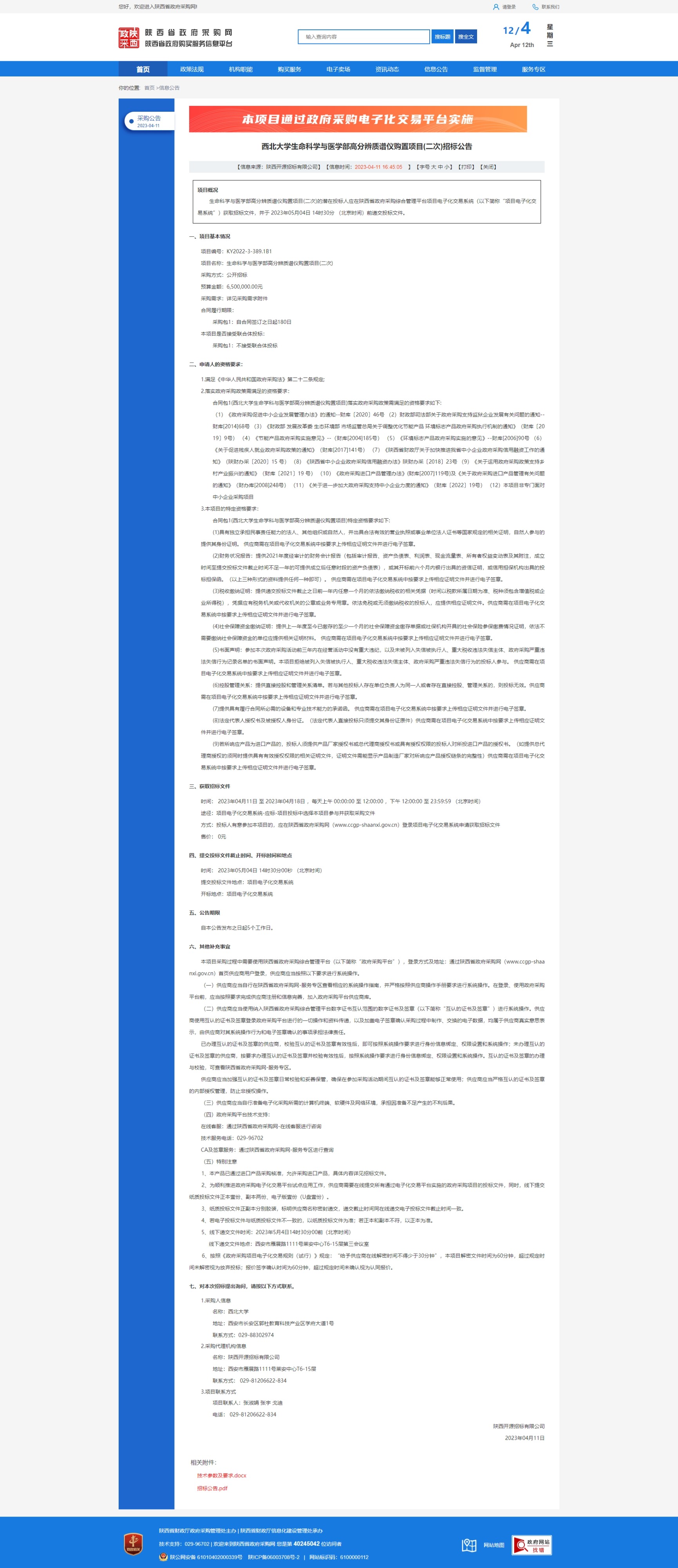 MILAN.COM生命科学与医学部高分辨质谱仪购置项目(二次)招标公告 作者: 编辑:采购与招标办公室 时间:2023-04-12 原公告链接:http://www.ccgp-shaanxi.gov.cn/freecms/site/shaanxi/ggxx/info/2023/8a69c1d08729508201876f61b85a088e.html?noticeType=001011¬iceId=199c1a02-d846-11ed-9a8e-08c0eb20c666