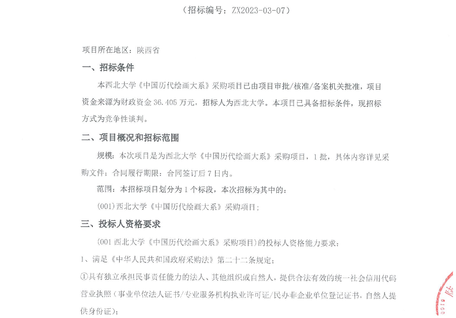 MILAN.COM《中国历代绘画大系》采购项目竞争性谈判公告 作者: 编辑:采购与招标办公室 时间:2023-04-18 原公告链接:http://bulletin.sntba.com/biddingBulletin/2023-04-18/548646.html
