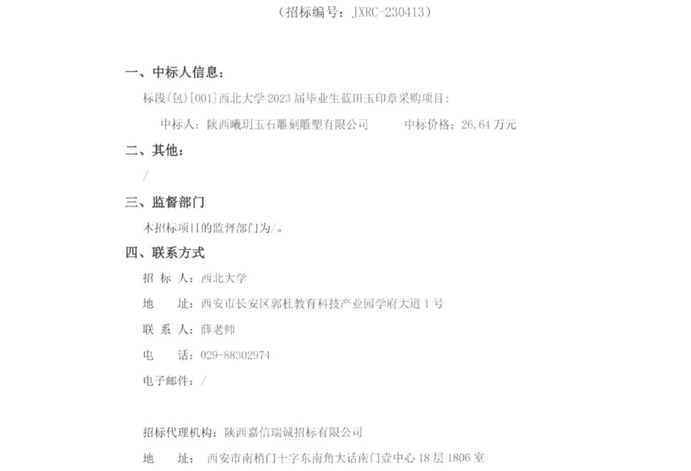 MILAN.COM2023届毕业生蓝田玉印章采购项目成交结果公告 作者: 编辑:采购与招标办公室 时间:2023-05-05 原公告链接:http://bulletin.sntba.com/resultBulletin/2023-05-05/554805.html