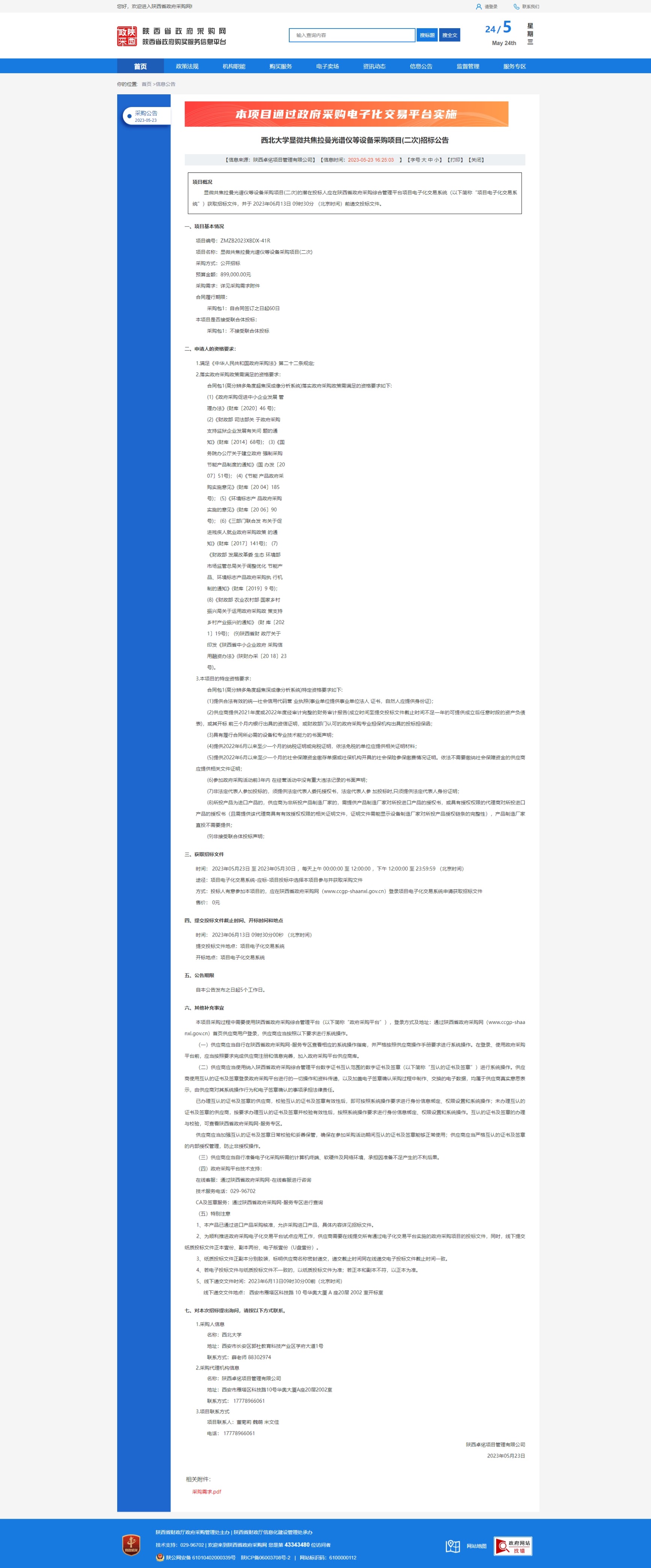 MILAN.COM显微共焦拉曼光谱仪等设备采购项目(二次)招标公告 作者: 编辑:采购与招标办公室 时间:2023-05-24 原公告链接:http://www.ccgp-shaanxi.gov.cn/freecms/site/shaanxi/ggxx/info/2023/8a69c08788448619018847a28ea75e82.html?noticeType=001011¬iceId=5655d7d7-f944-11ed-9a8e-08c0eb20c666