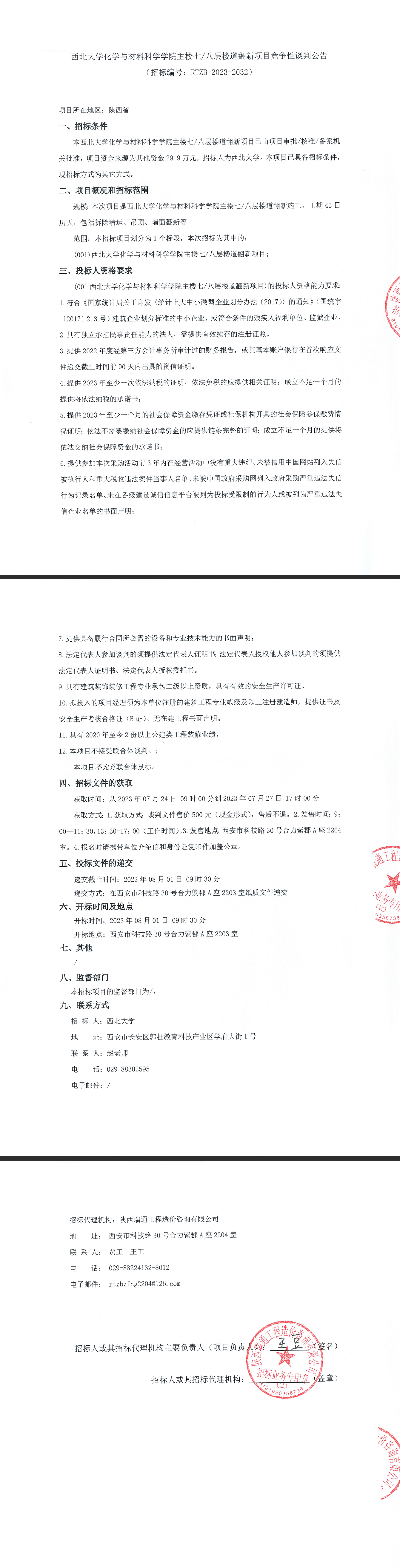 MILAN.COM化学与材料科学学院主楼七/八层楼道翻新项目竞争性谈判公告