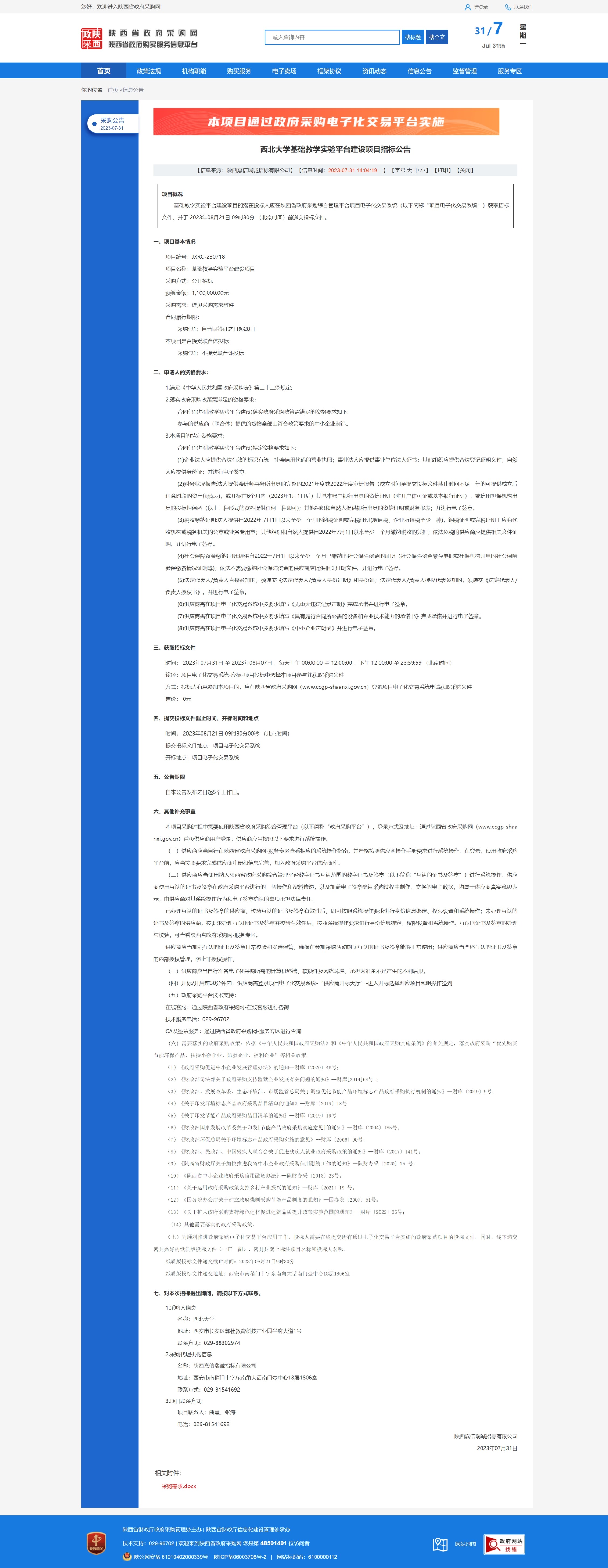 MILAN.COM基础教学实验平台建设项目招标公告 作者: 编辑:采购与招标办公室 时间:2023-07-31 原公告链接:http://www.ccgp-shaanxi.gov.cn/freecms/site/shaanxi/ggxx/info/2023/8a69c0be899a71f00189a9e854200a61.html?noticeType=001011¬iceId=3bdd4942-2f69-11ee-9a8e-08c0eb20c666