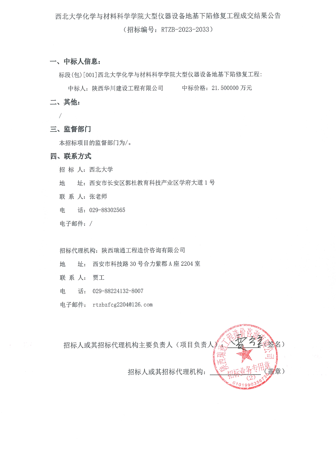MILAN.COM化学与材料科学学院大型仪器设备地基下陷修复工程成交结果公告