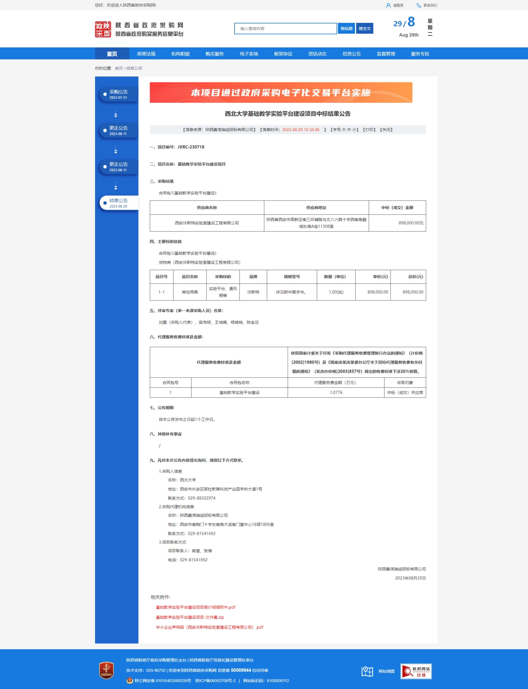MILAN.COM基础教学实验平台建设项目中标结果公告 作者: 编辑:采购与招标办公室 时间:2023-08-29 原公告链接:http://www.ccgp-shaanxi.gov.cn/freecms/site/shaanxi/ggxx/info/2023/8a69c4438a23269f018a3ff298226eae.html?noticeType=001021¬iceId=a20d4fa8-463f-11ee-9a8e-08c0eb20c666
